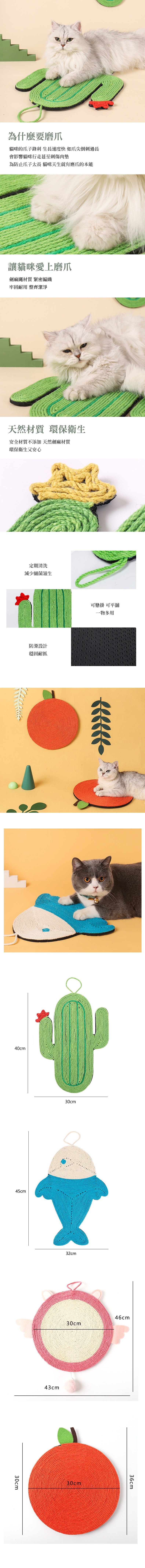 商品規格: 商品材質:劍麻繩、EVA泡棉 商品尺寸:仙人掌 長30/寬40(cm) 鯨魚 長32/寬45(cm) 天使 長43/寬46(cm) 橘子 長30/寬36(cm) 誤差1-3cm 產地:中國