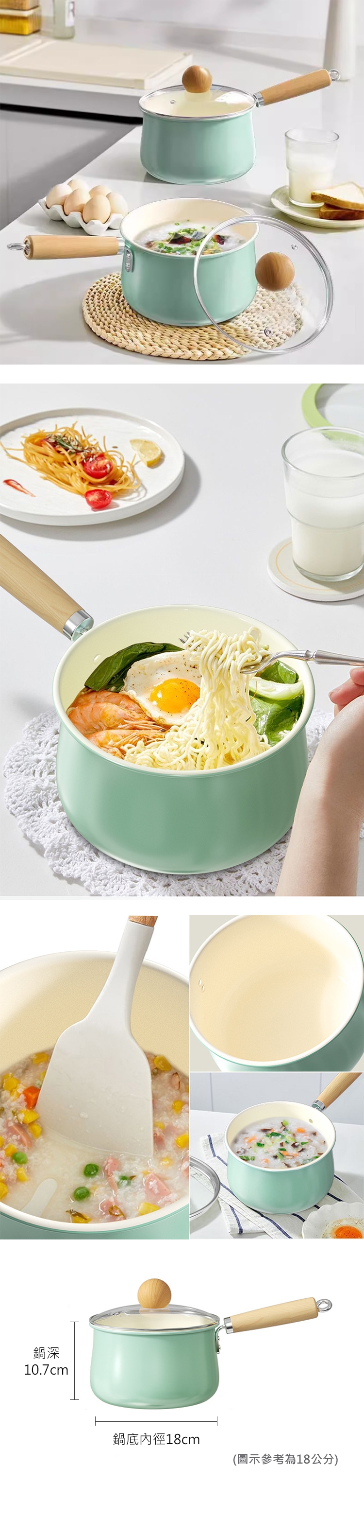 【QHL 酷奇】陶瓷不沾鍋牛奶鍋-附鍋蓋-18CM