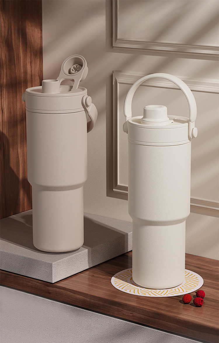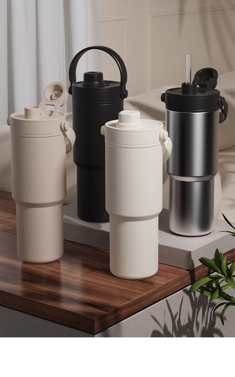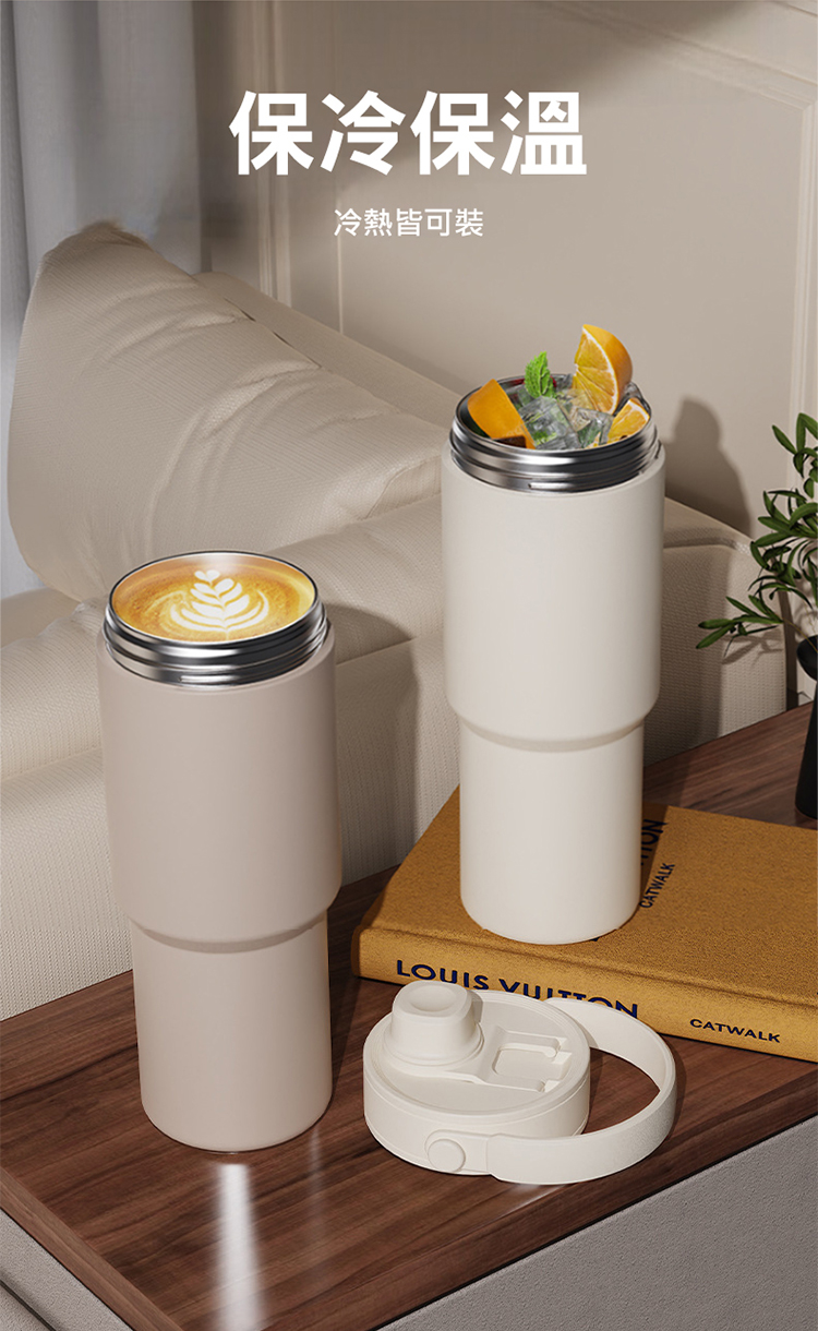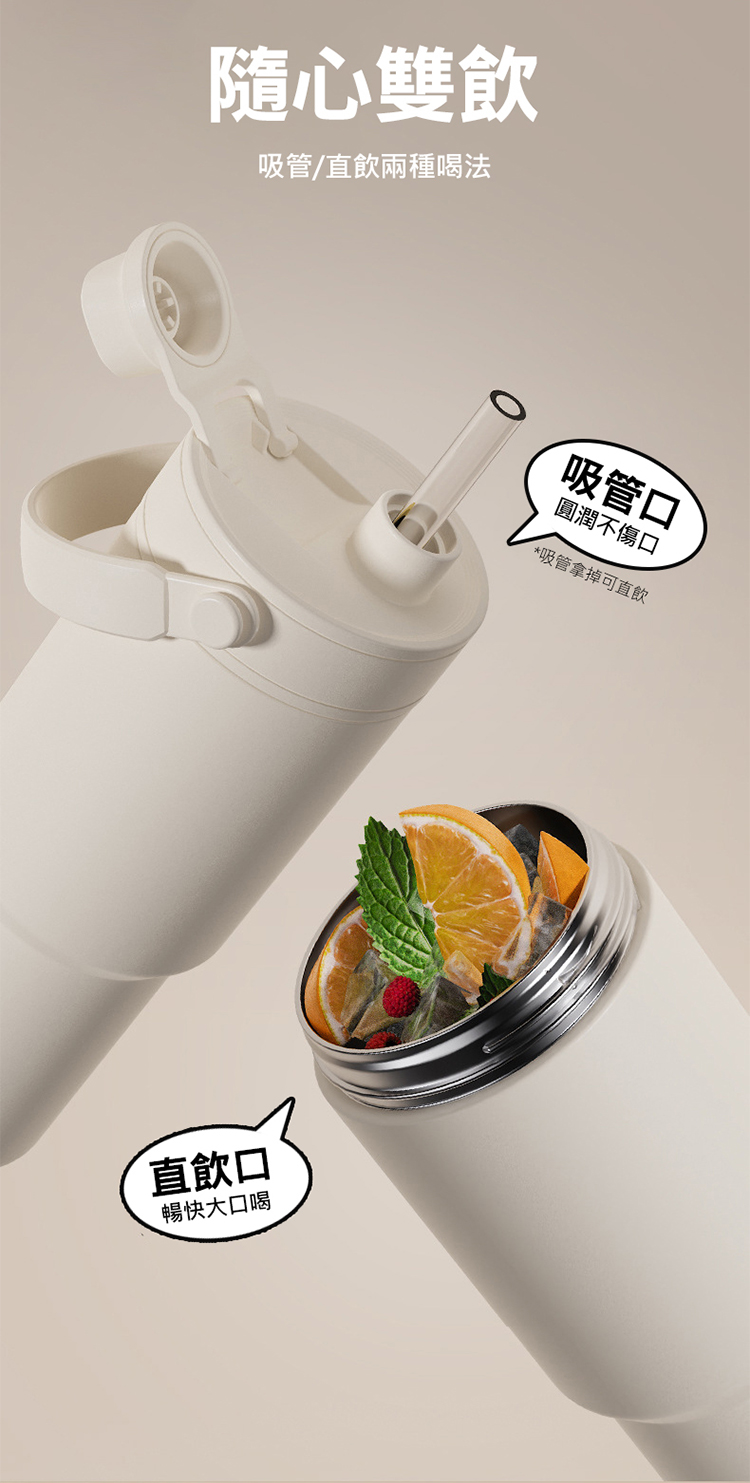 【QHL 酷奇】316不鏽鋼雙飲手提保溫冰霸杯-1000ml