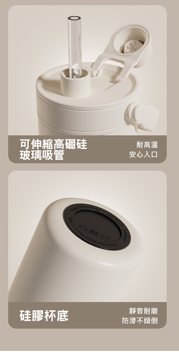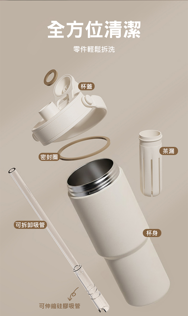 【QHL 酷奇】純色304不鏽鋼雙飲吸管蓋手提冰霸杯-1200ml