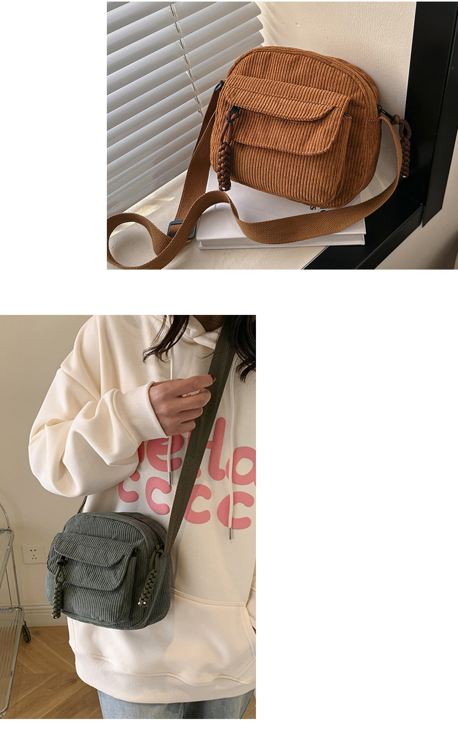 【JOYFUL LIFE 特樂生活】純色燈芯絨單肩包