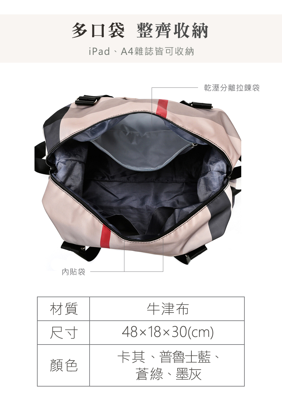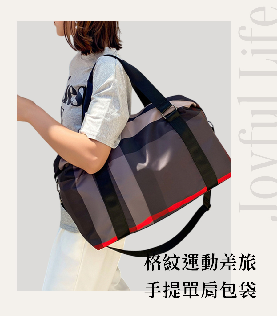 【JOYFUL LIFE 特樂生活】格紋運動差旅手提單肩包袋