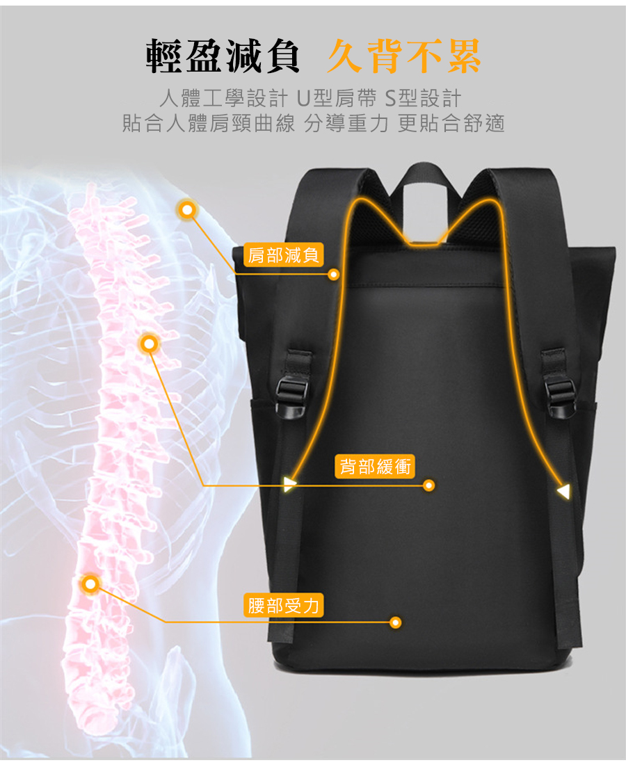 【JOYFUL LIFE 特樂生活】捲蓋式商務休閒後背包