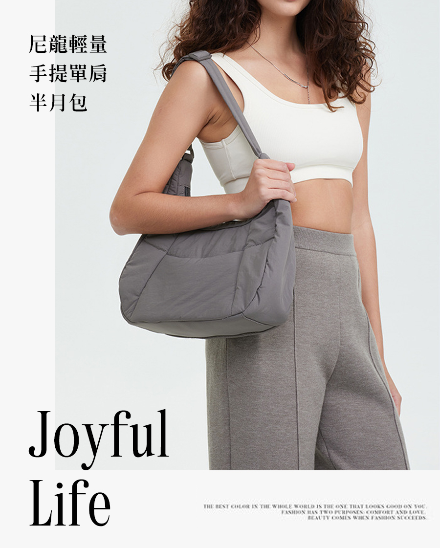 【JOYFUL LIFE 特樂生活】尼龍輕量手提單肩半月包