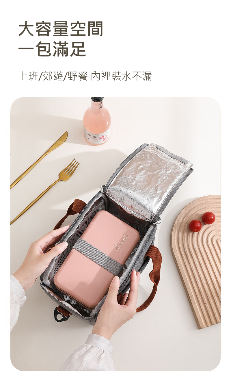 【JOYFUL LIFE 特樂生活】磨砂大開口手提單肩保溫野餐便當袋