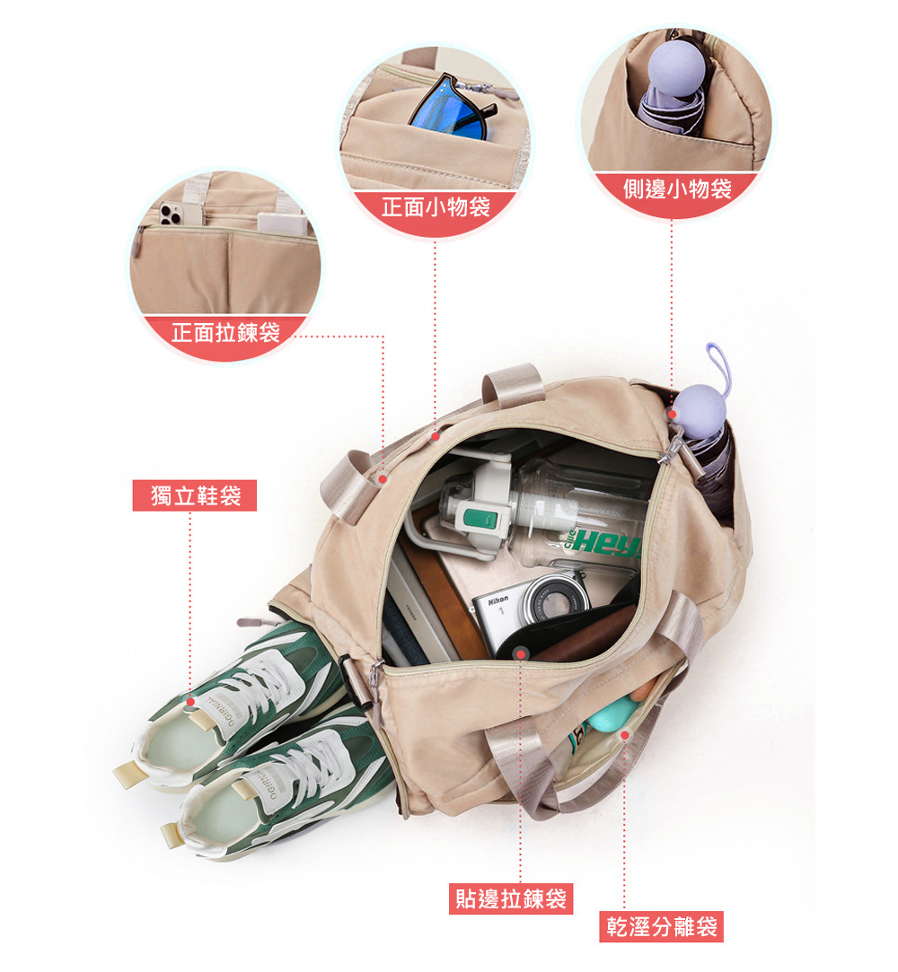 【JOYFUL LIFE 特樂生活】戶外大容量手提旅行雙口袋提袋(旅行袋/健身袋/手提袋)