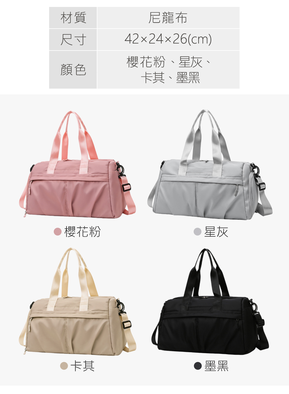 【JOYFUL LIFE 特樂生活】純色運動旅行尼龍手提單肩包