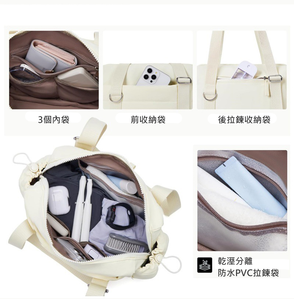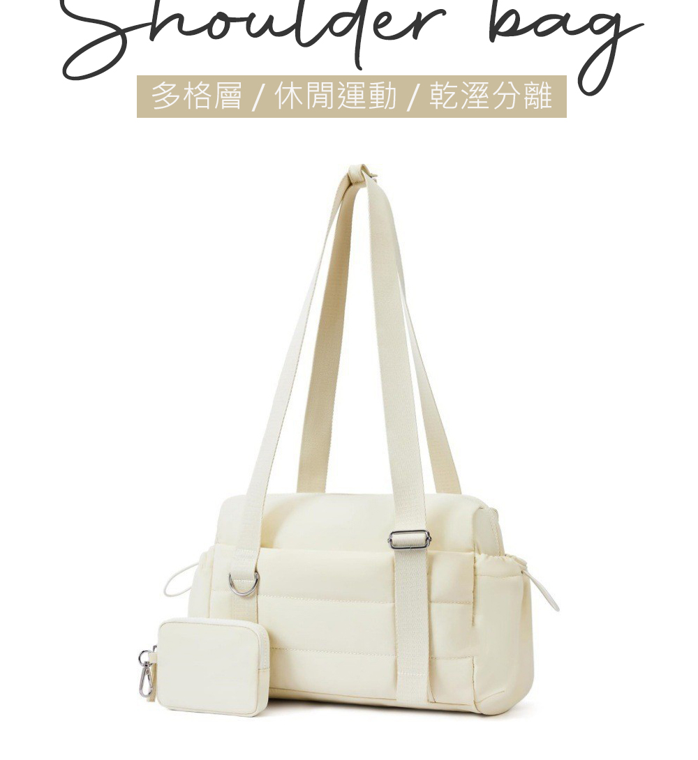 【JOYFUL LIFE 特樂生活】休閒運動乾濕分離單肩手提包-附拉鍊小包