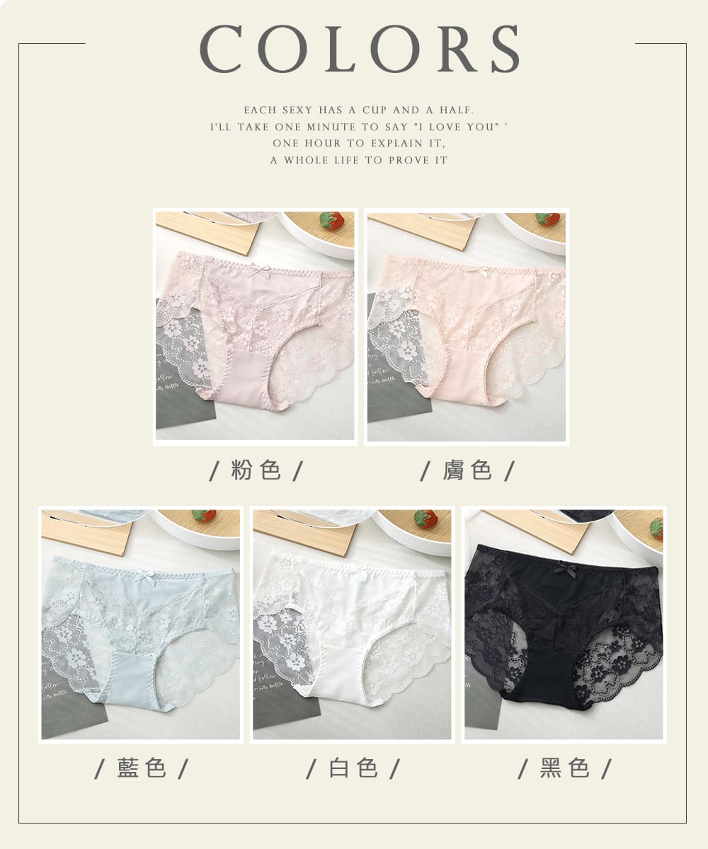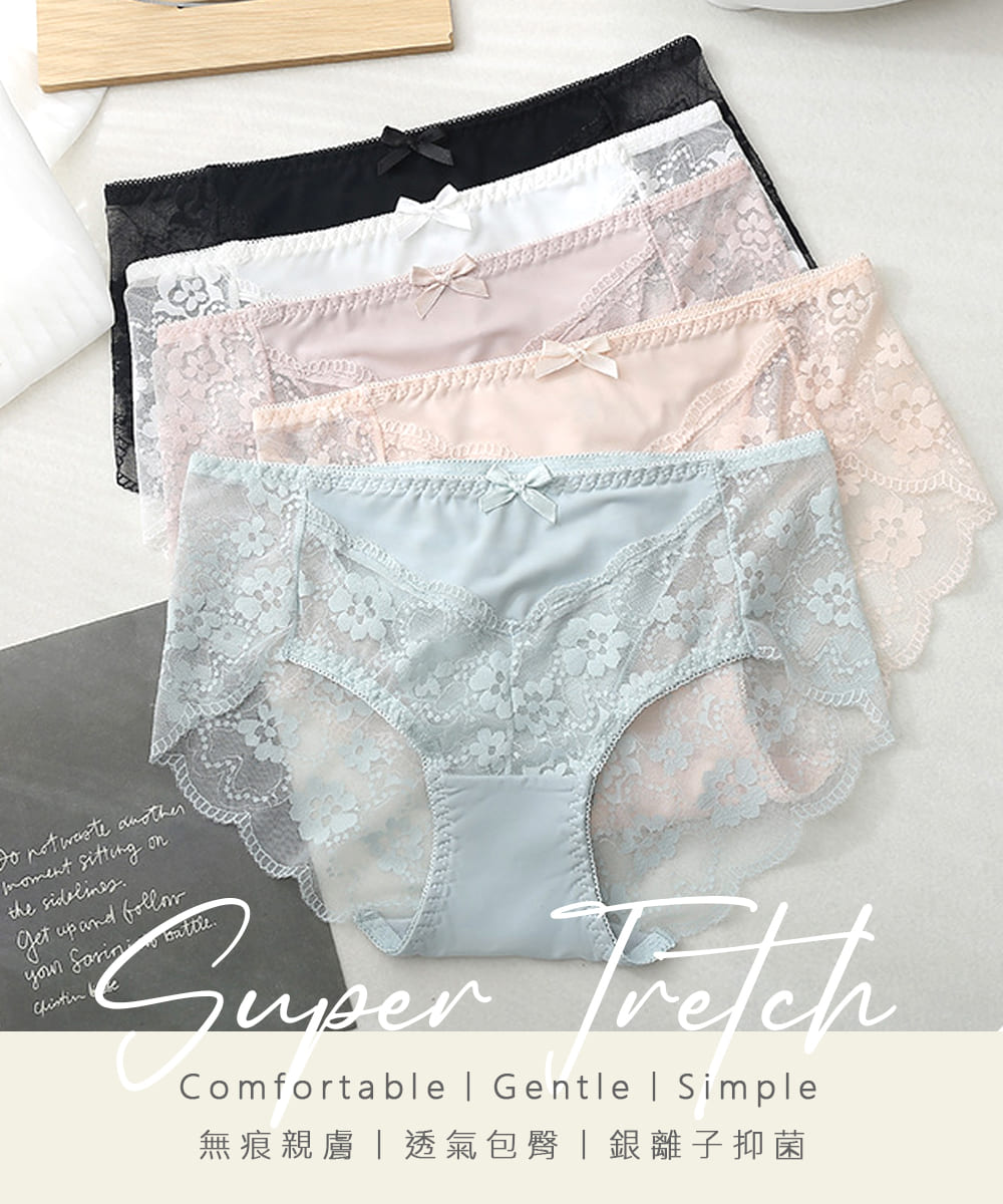 【Kosmiya】5件組 銀離子蕾絲花朵中腰內褲/銀離子內褲/蕾絲內褲/女內褲(5色可選/M-XL)