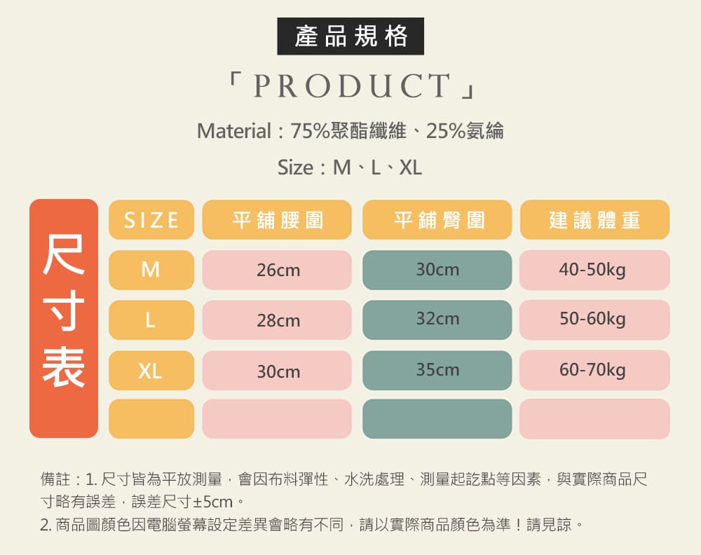 ▲商品會因不同批製作或丈量方式等因素,而有些許落差,尺寸測量”正負3公分”為正常範圍唷!