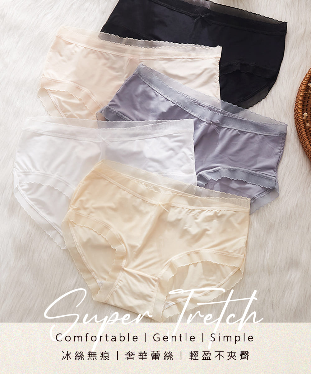 【Kosmiya】5件組 冰絲薄透性感蕾絲中腰內褲/無痕內褲/女內褲/冰絲內褲/性感內褲(5色可選/M-XL)