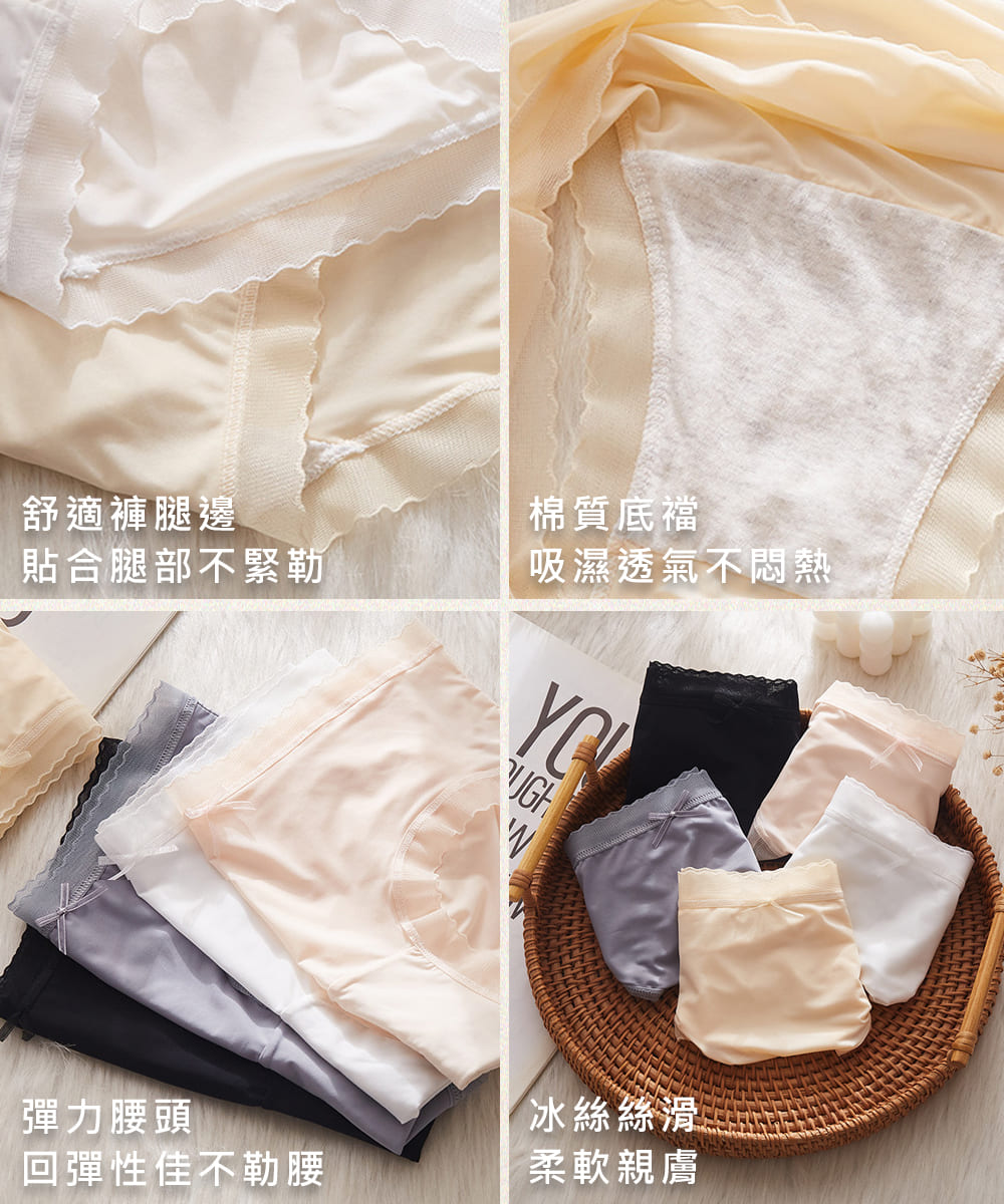【Mevels 瑪薇絲】6件組 涼感冰絲微收腹無痕中高腰內褲 L/XL/XXL