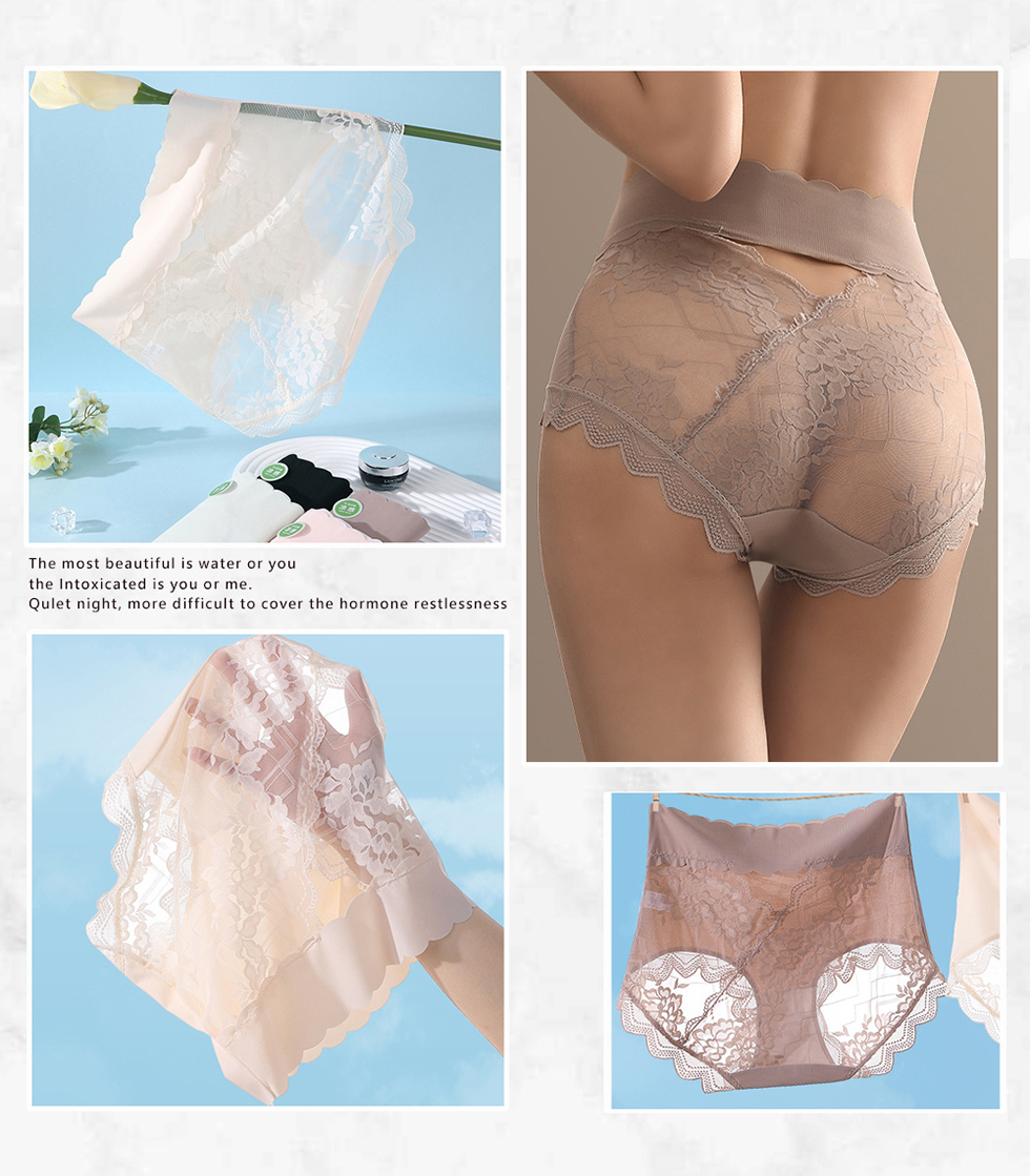 【Mevels 瑪薇絲】5件組 大尺碼半透鏤空蕾絲蠶絲底內褲/無痕/中高腰內褲/女內褲(5色 XL/XXL)