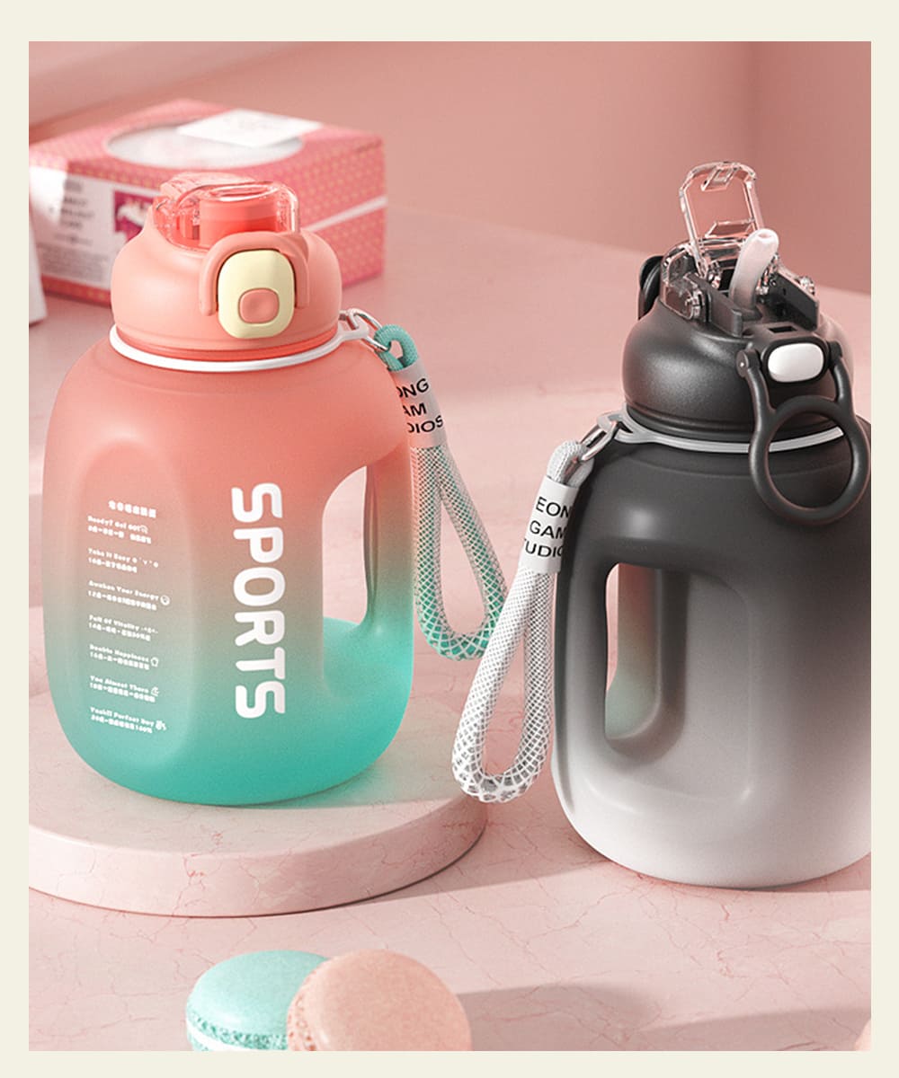 容量:1000ml 顏色:暮冬顏黑、金秋綠色、早春粉、夏日絢紫 產地:中國 材質:杯身PC/杯蓋P/吸嘴PP/硅膠密封圈