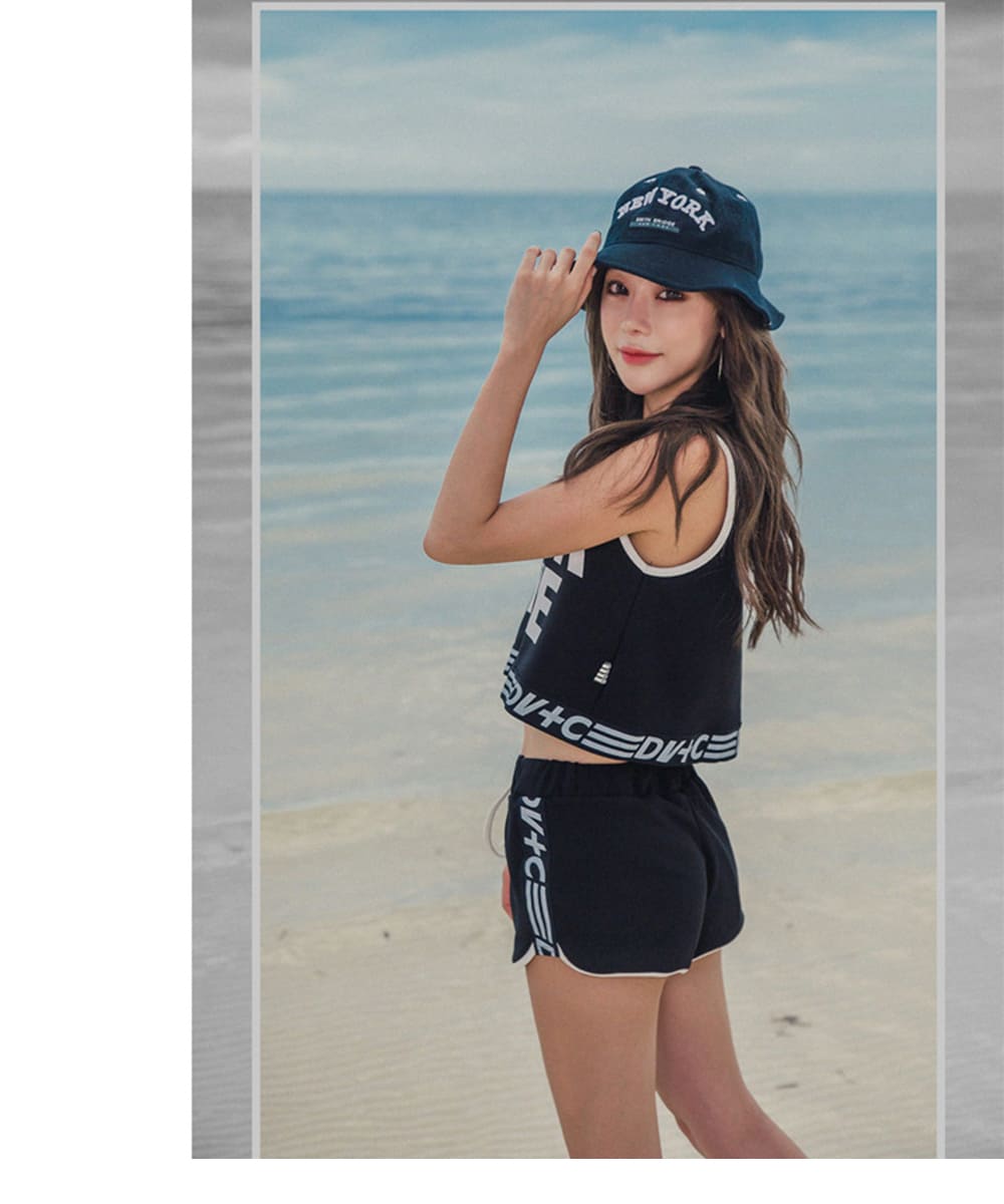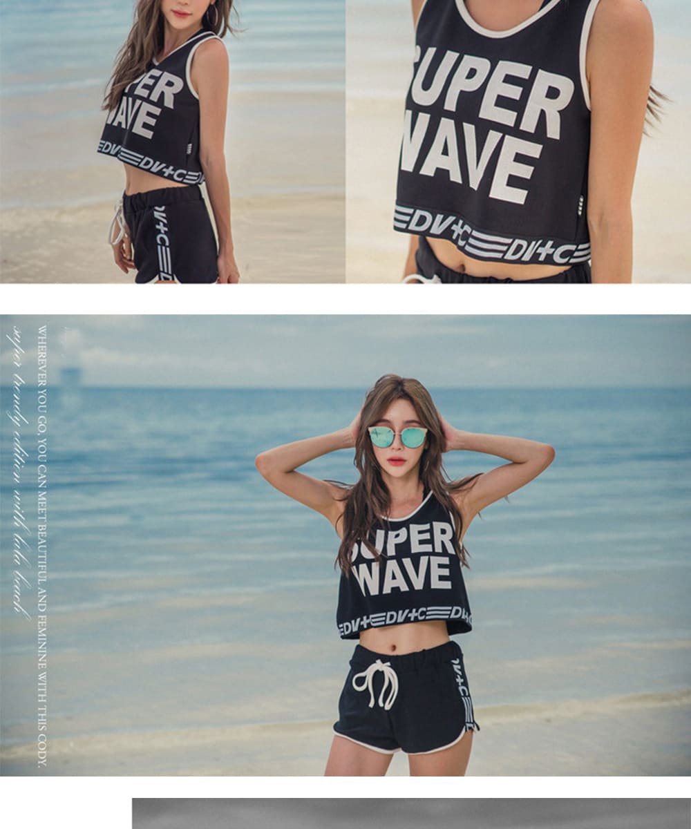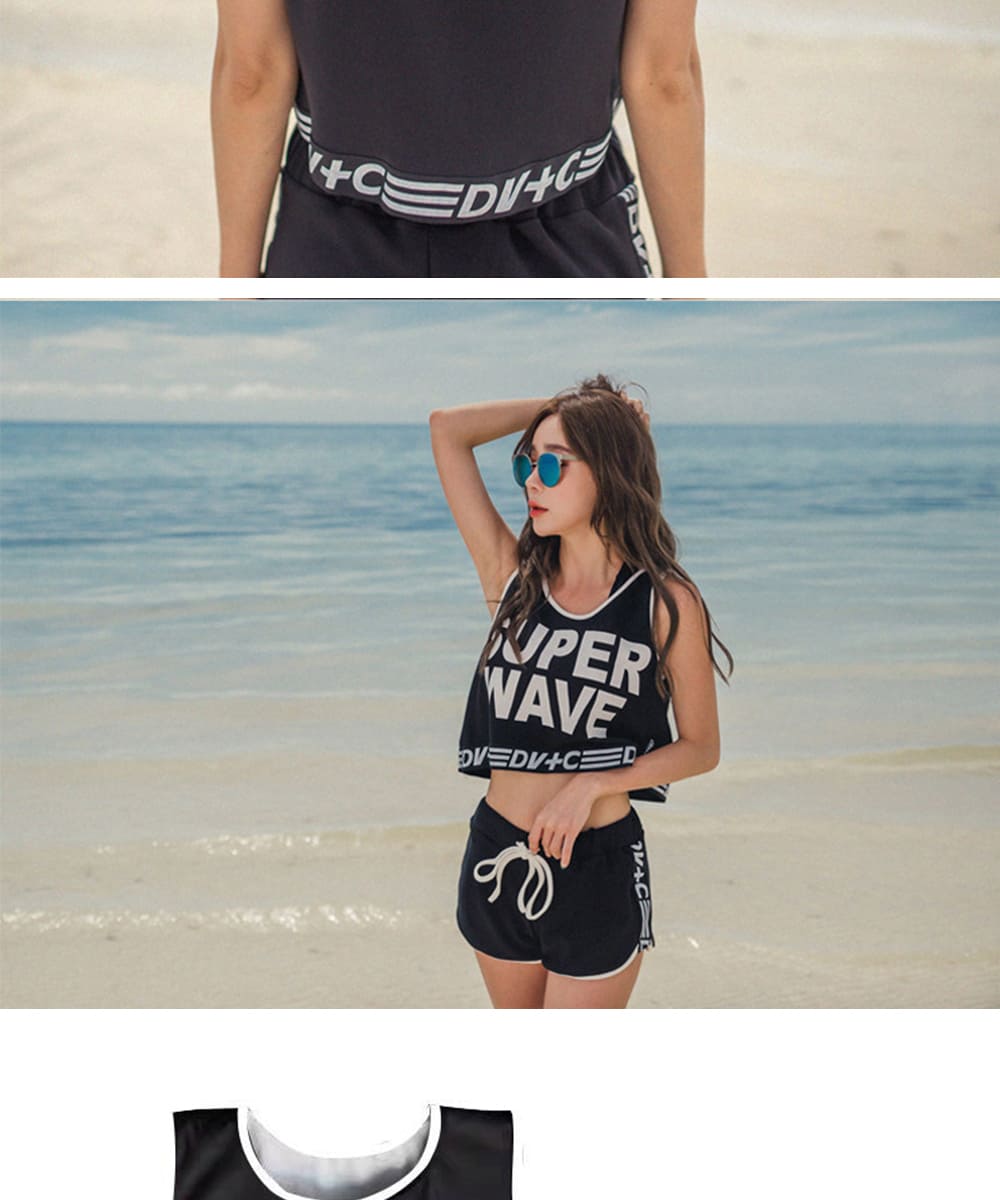 【Kosmiya】1套 韓版字母運動風三件式泳衣/女泳裝/比基尼/溫泉泳衣/罩衫泳裝/度假泳衣(M-XL)
