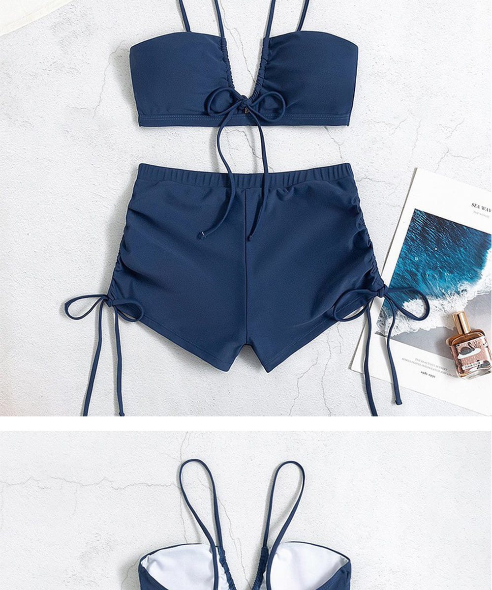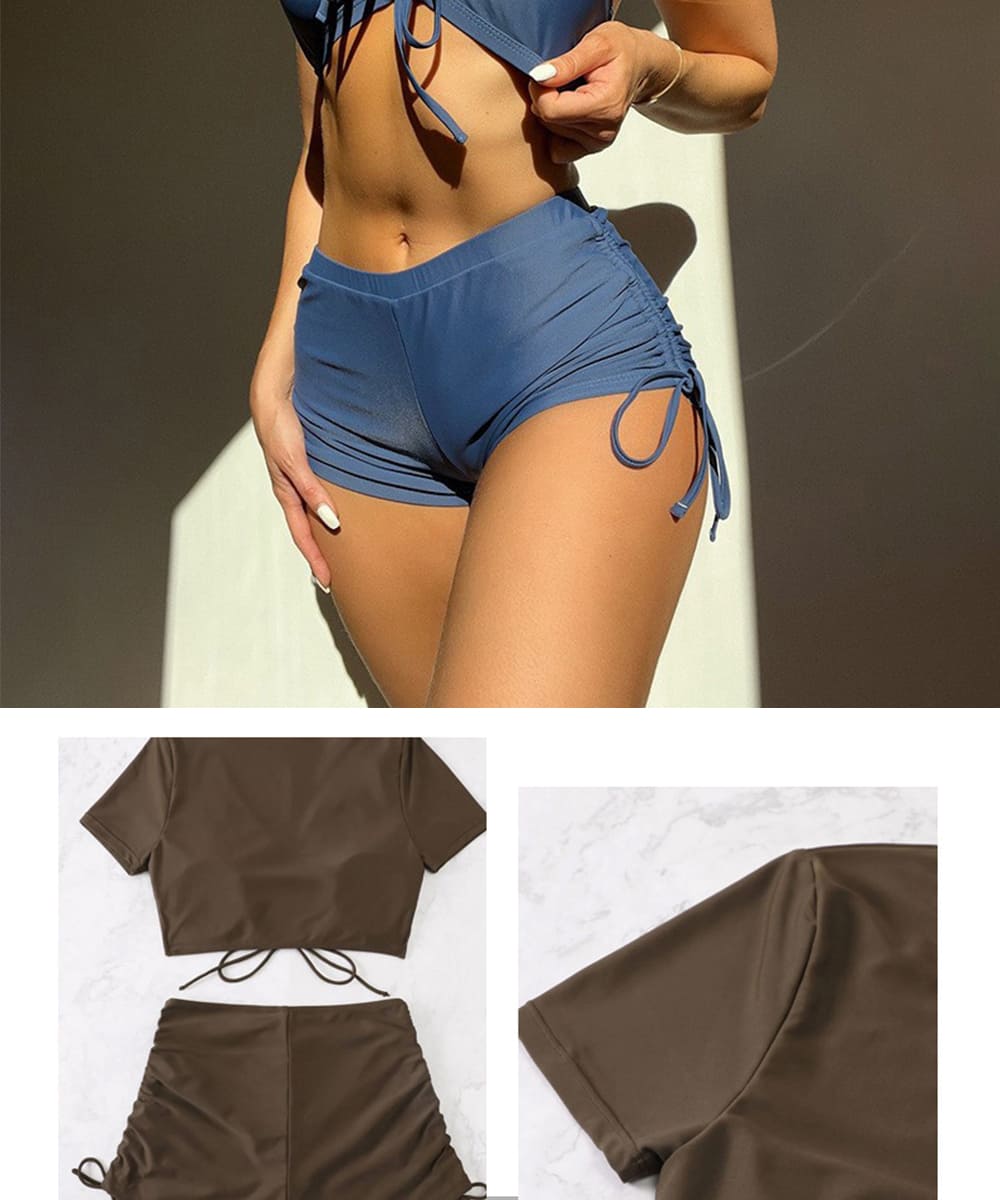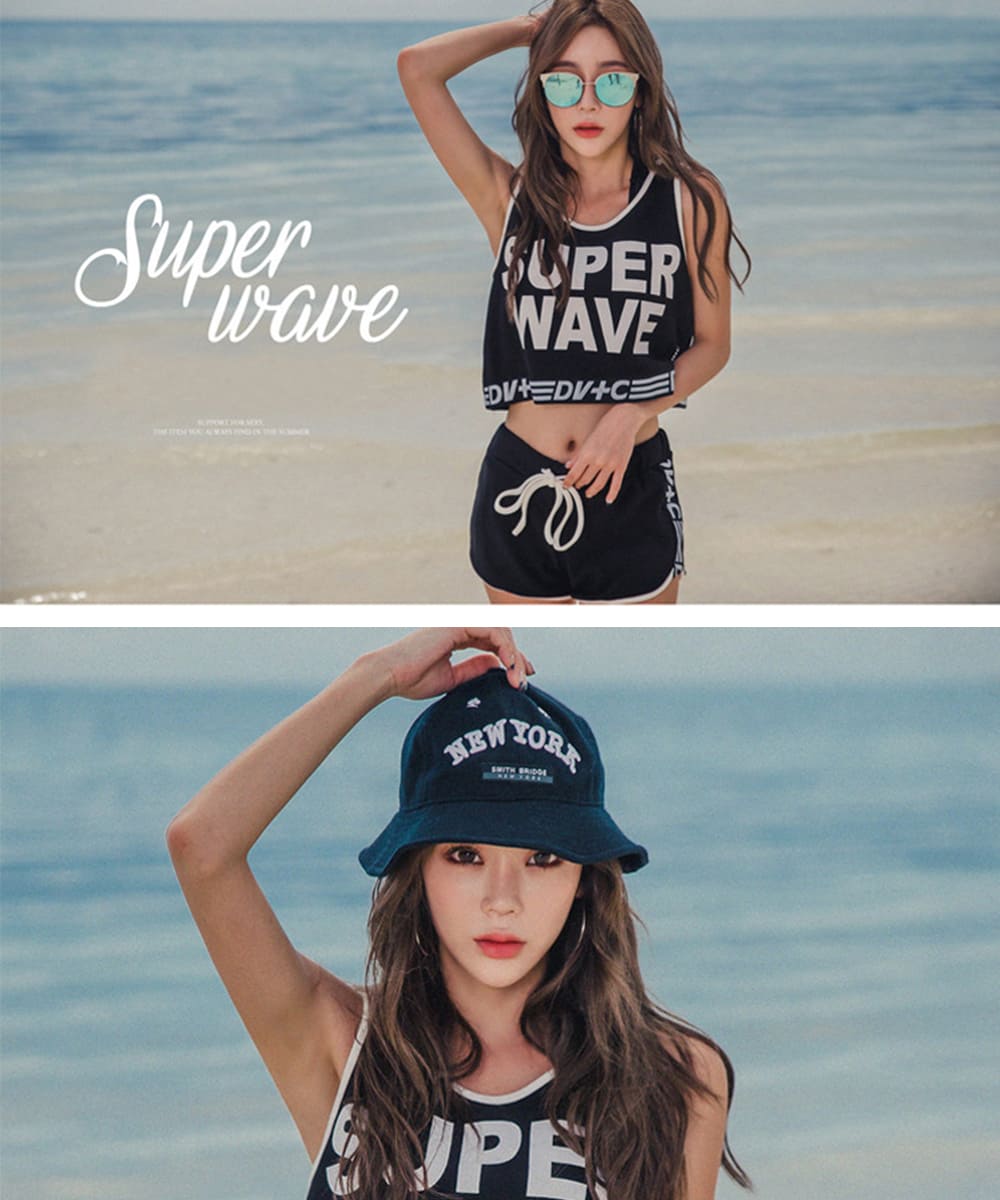 【Kosmiya】1套 韓版字母運動風三件式泳衣/女泳裝/比基尼/溫泉泳衣/罩衫泳裝/度假泳衣(M-XL)