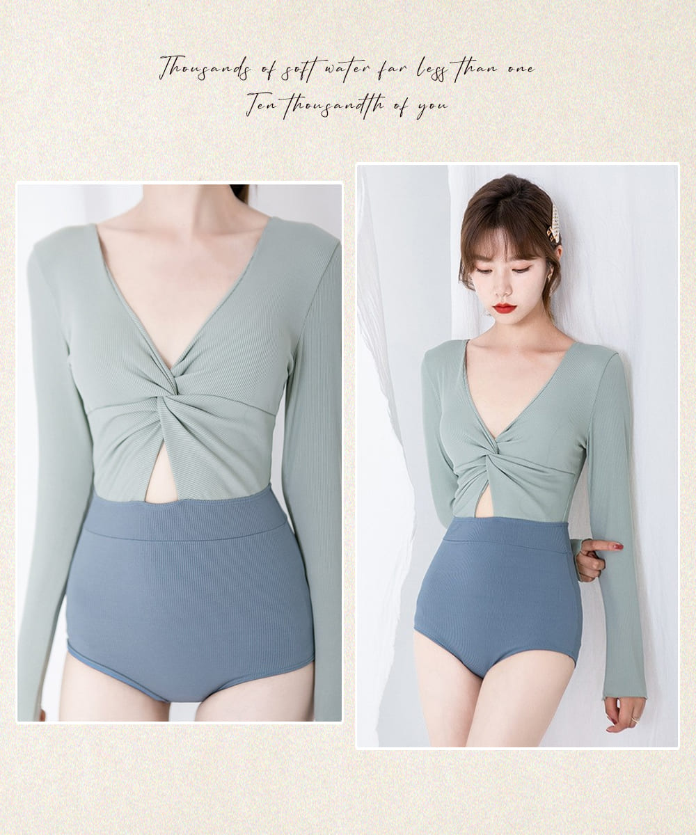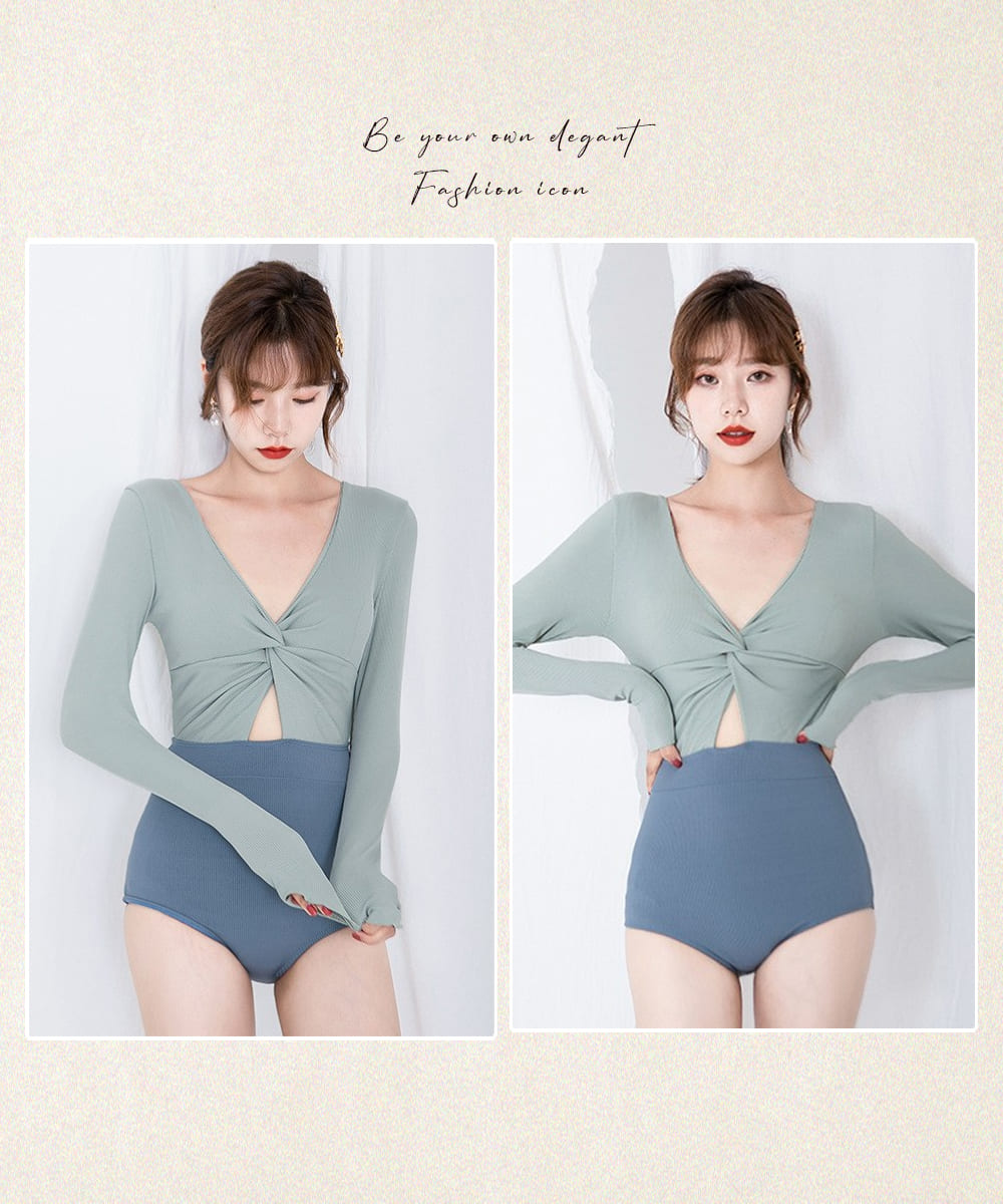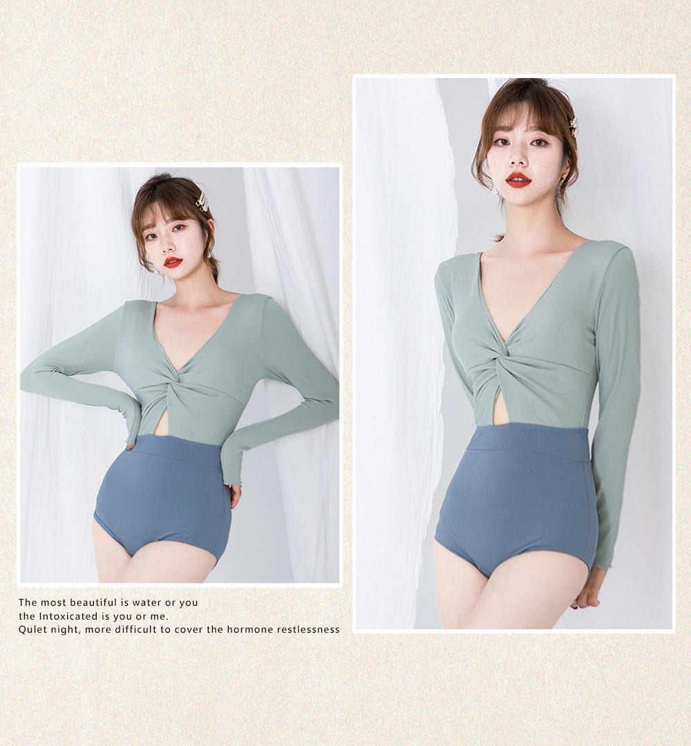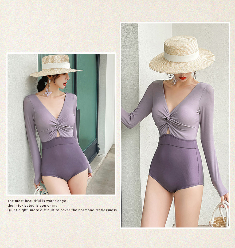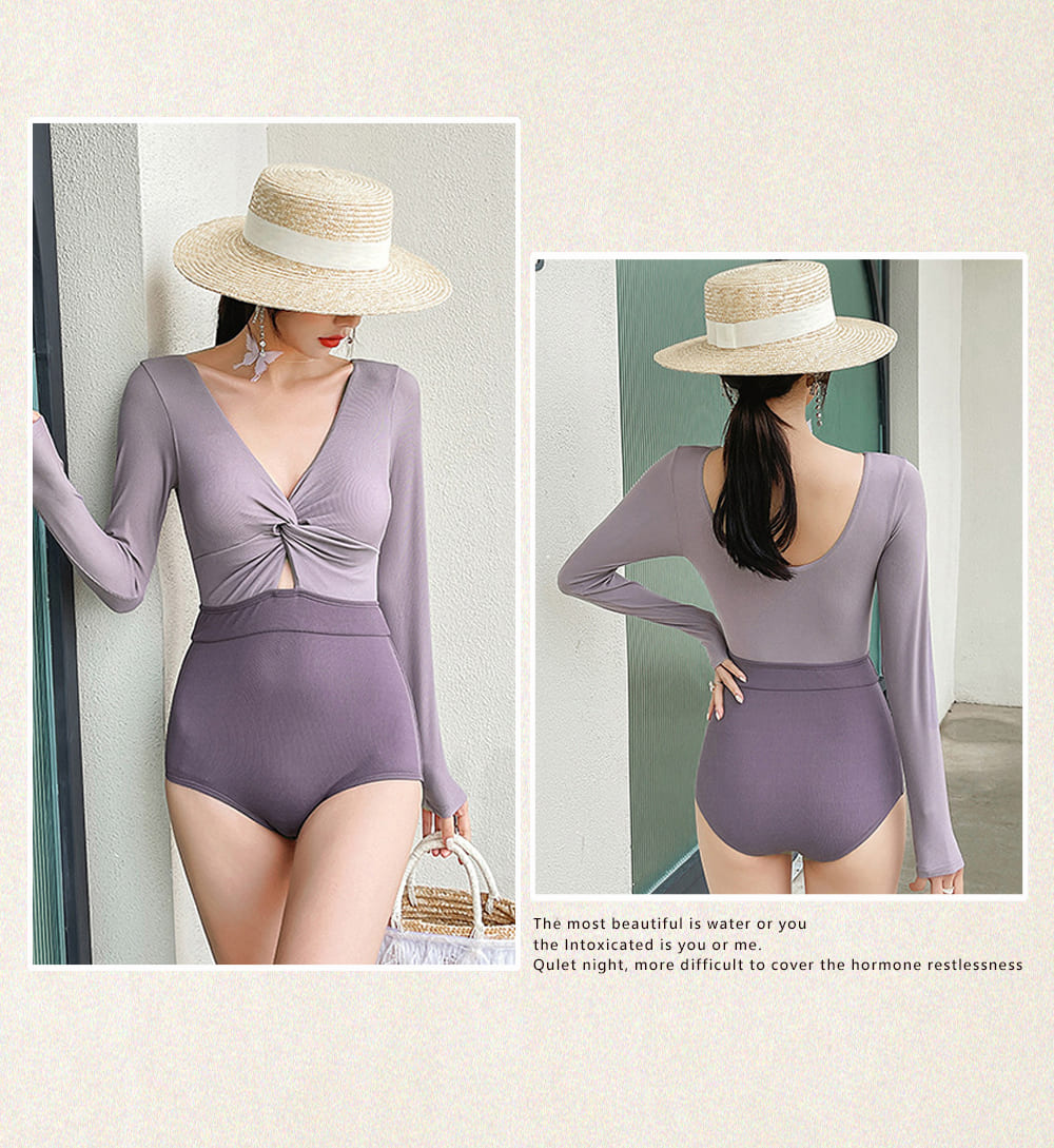 【Kosmiya】1件 長袖性感遮肚顯瘦連身式泳裝/連身泳裝/保守泳裝/溫泉泳裝/防曬泳裝(2色可選/M-XL)