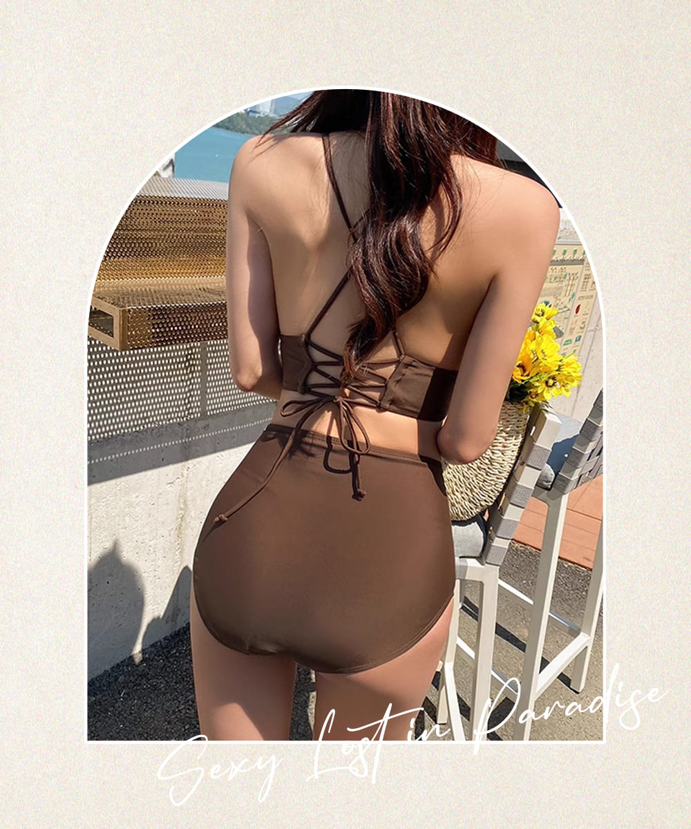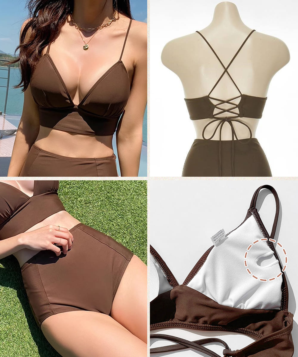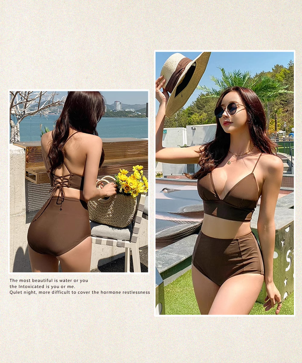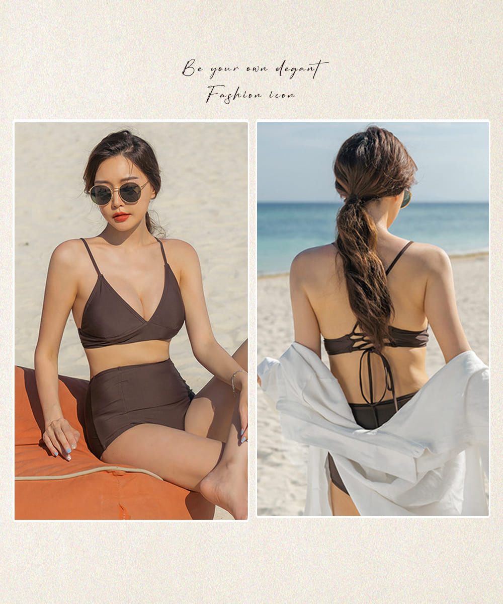 【Kosmiya】1套 韓版深V顯瘦兩件式泳裝/兩件式泳裝/保守泳裝/溫泉泳裝/防曬泳裝(3色可選/M-XL)