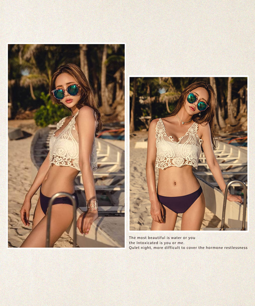 【Kosmiya】1套 兩件式 性感蕾絲深V泳裝/兩件式泳裝/保守泳裝/溫泉泳裝/防曬泳裝(2色可選/M-XL)