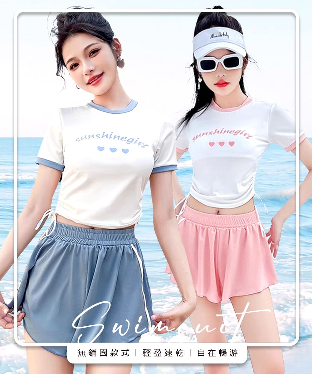 【Kosmiya】1套 兩件式 浪漫愛心泳裝/兩件式泳裝/保守泳裝/溫泉泳裝/防曬泳裝(3色可選/均碼)
