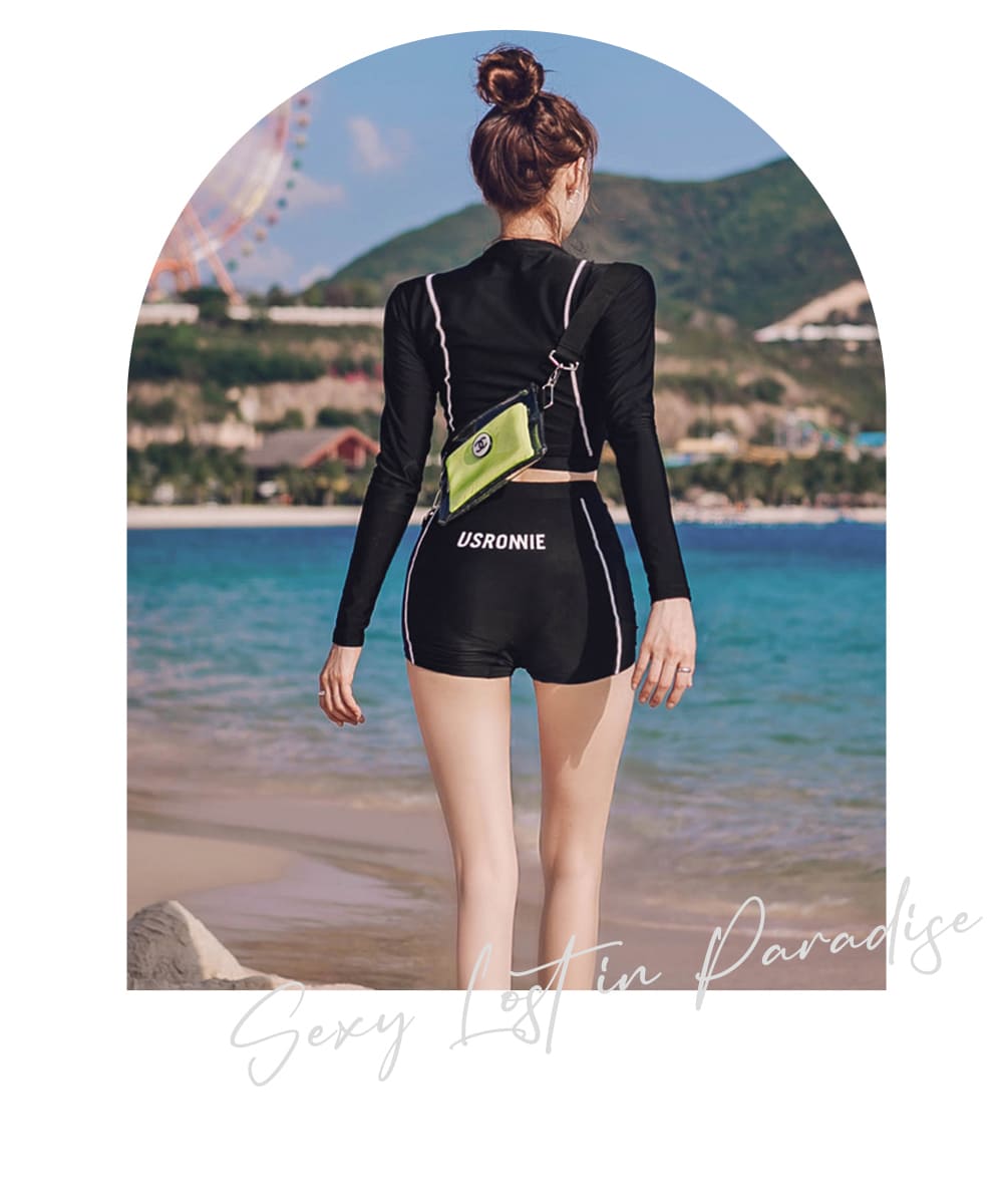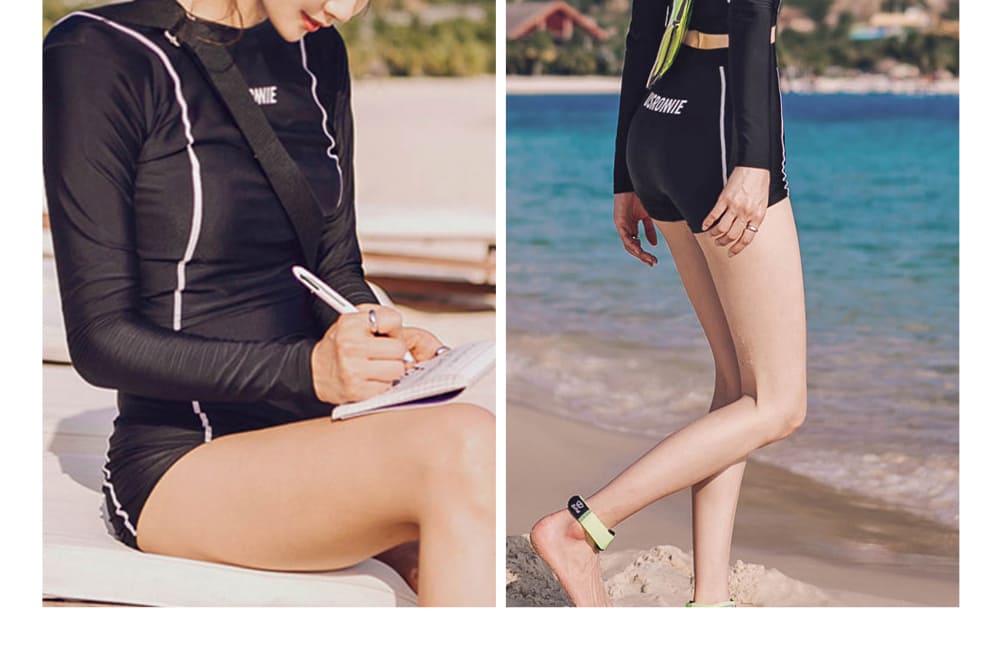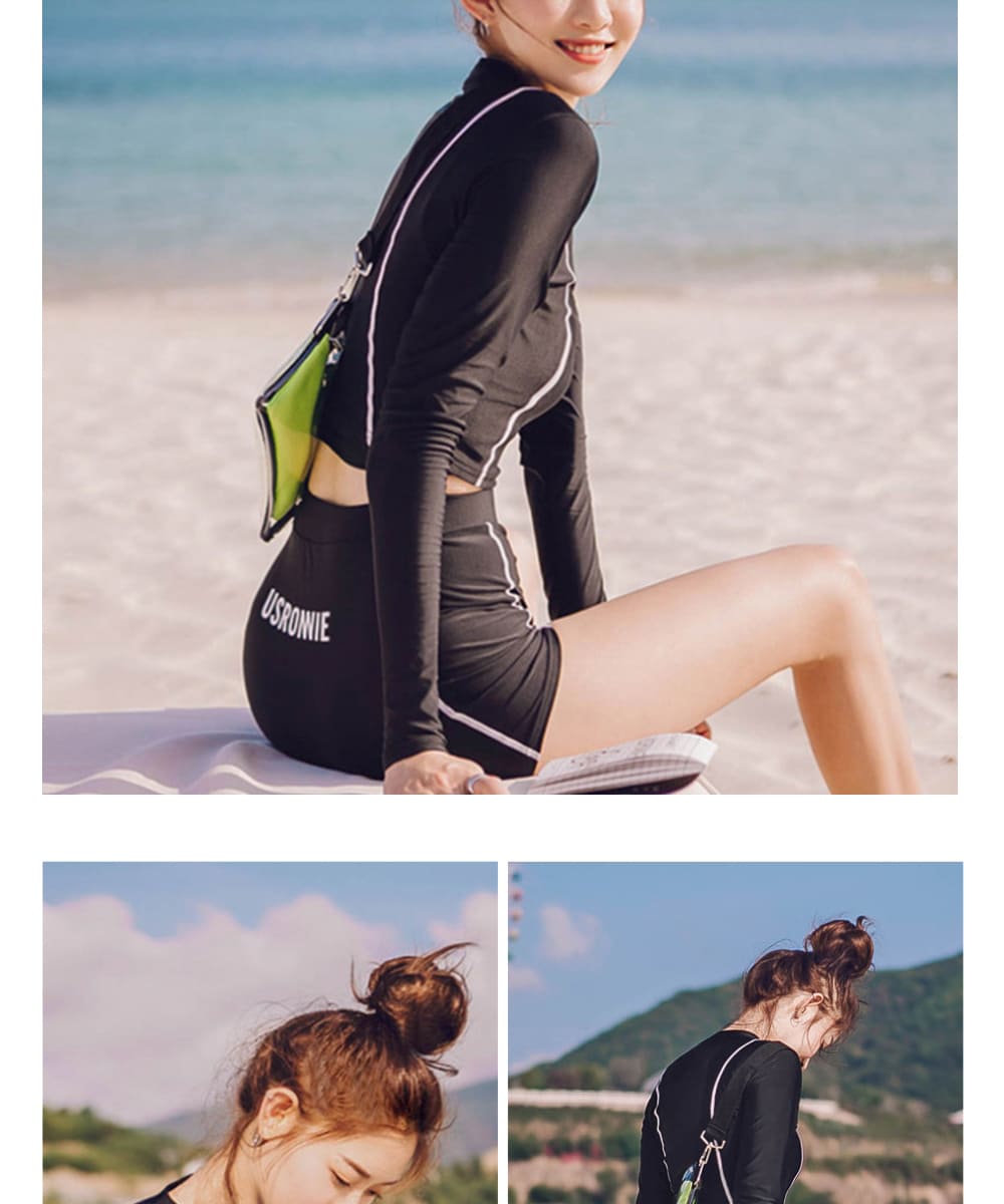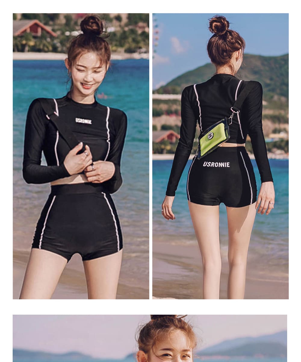 【Kosmiya】1套 兩件式 韓版線條簡約防曬泳裝/水母衣/兩件式泳裝/保守泳裝/溫泉泳裝/防曬泳裝(L-2XL)