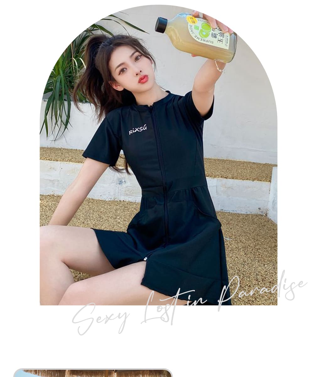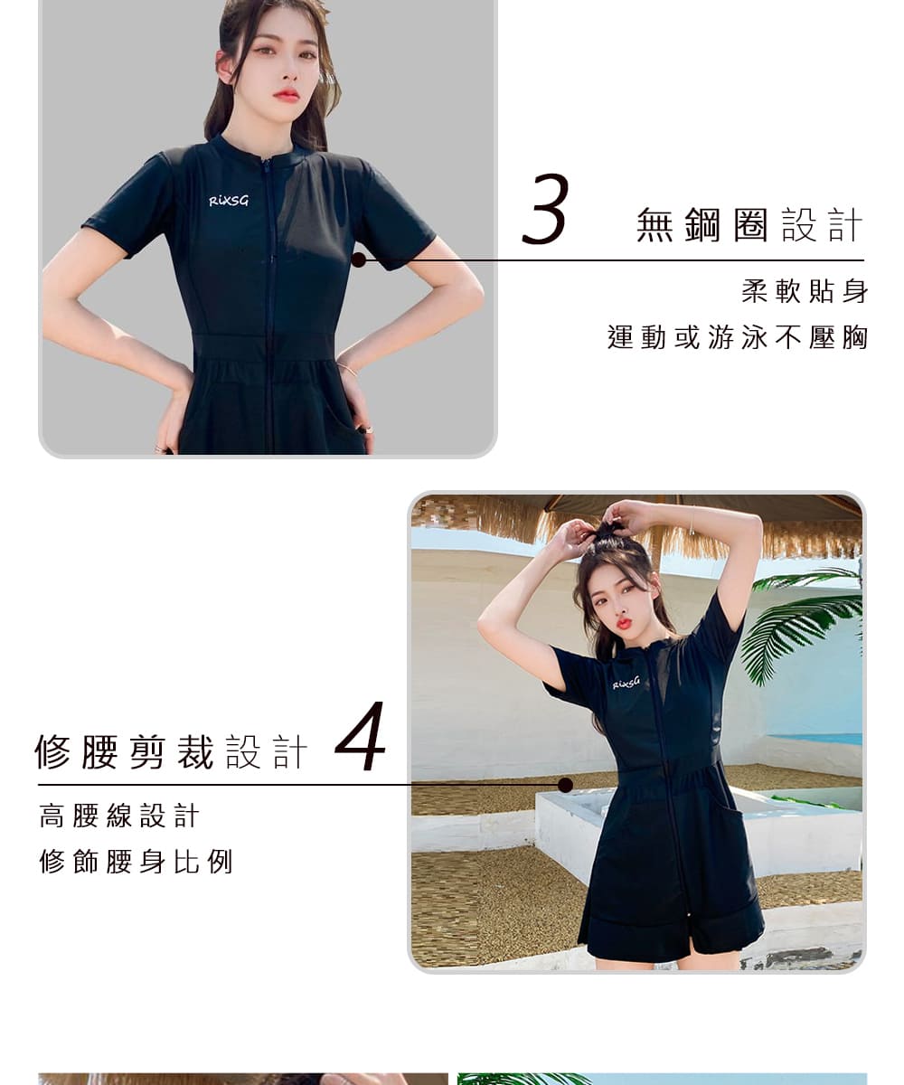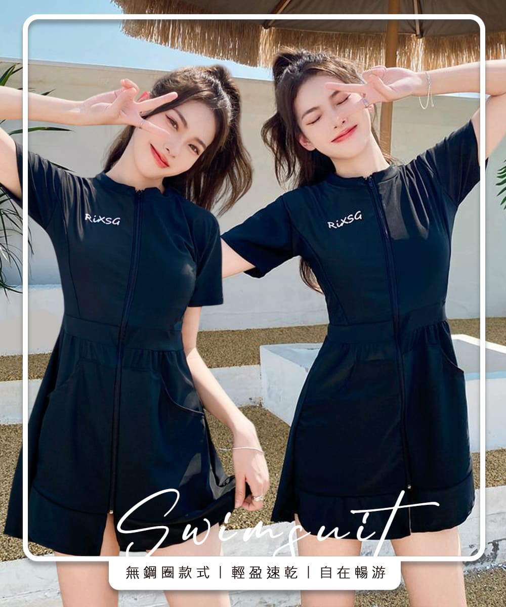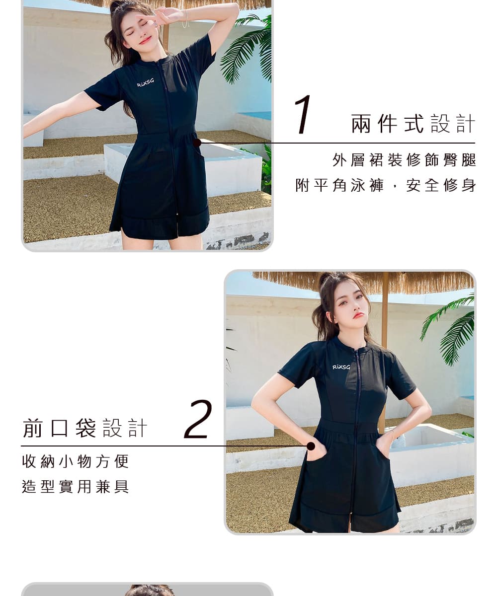 【Kosmiya】1套 兩件式 經典拉鍊小口袋泳裝/兩件式泳裝/保守泳裝/溫泉泳裝/防曬泳裝(L-2XL)