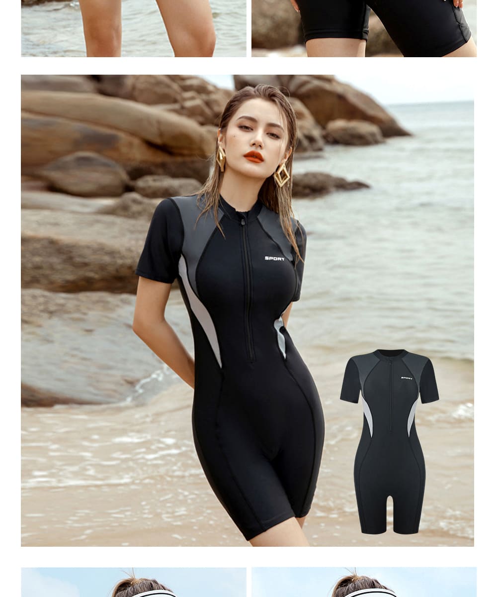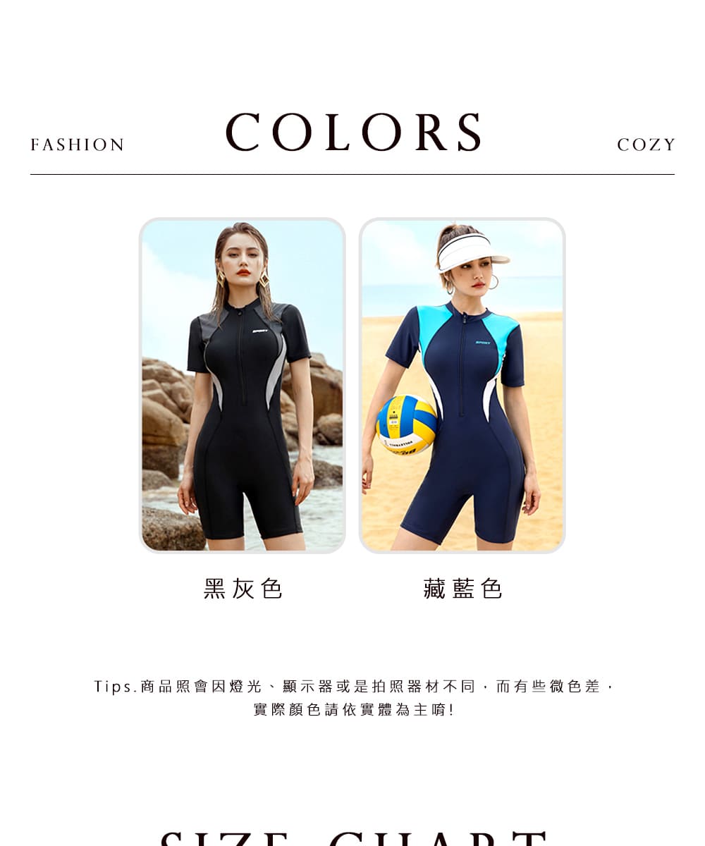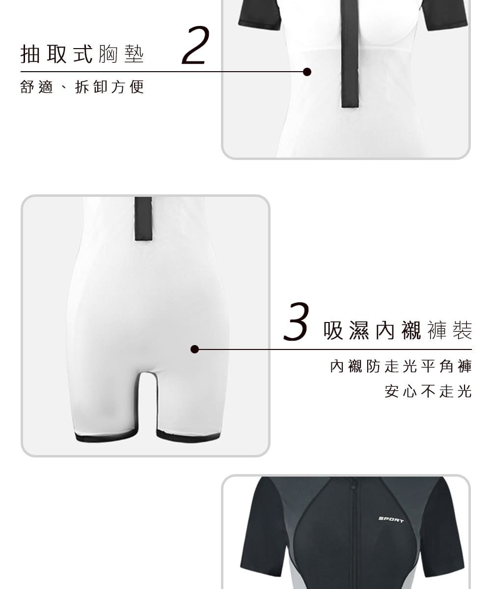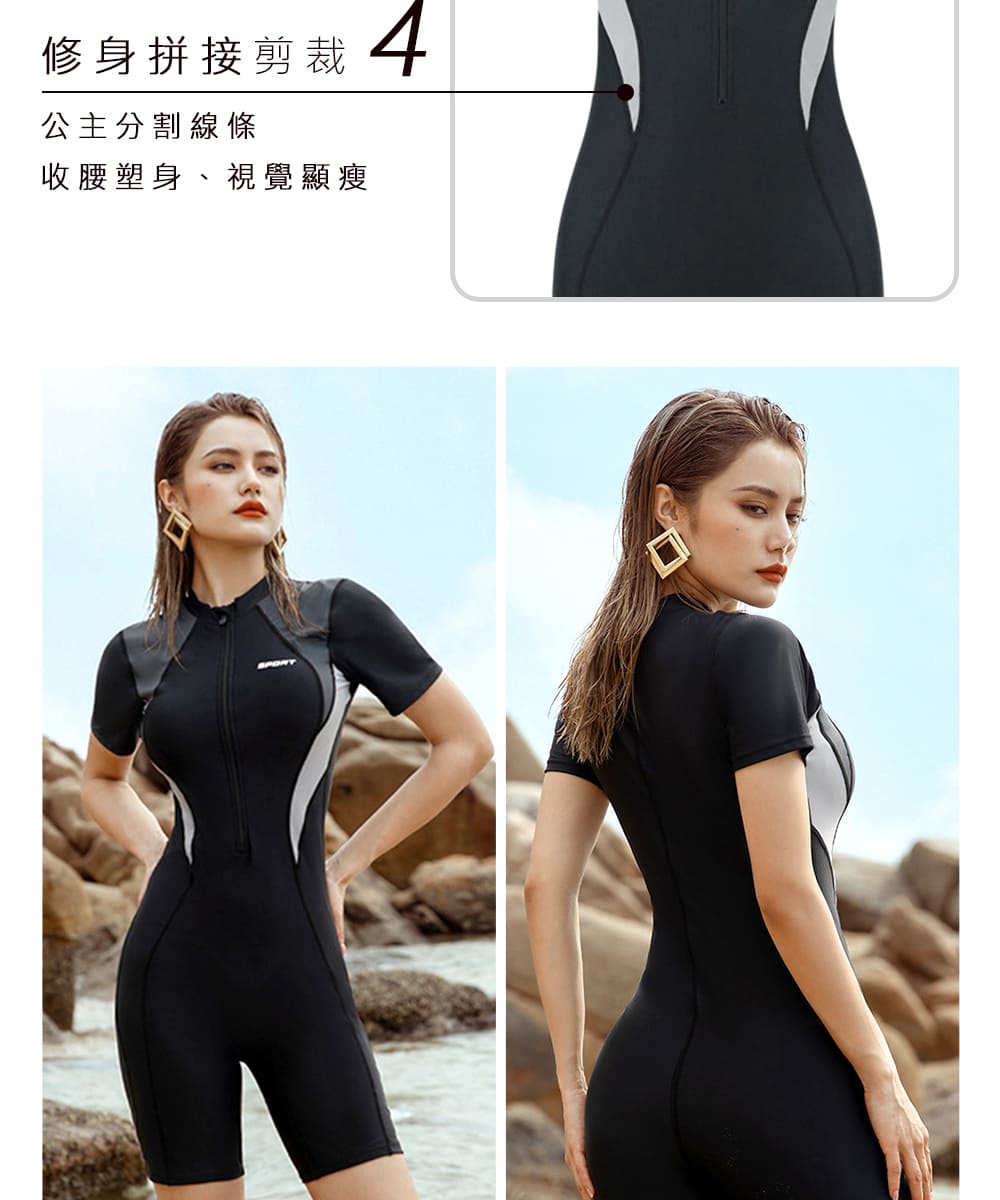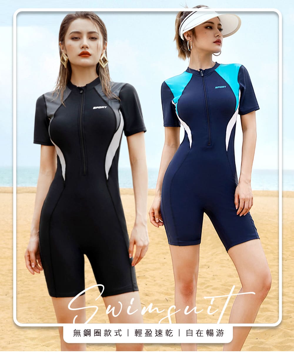 【Kosmiya】1套 專業級 前拉鍊 短袖連身泳裝 運動泳裝/競速泳裝/溫泉泳裝/保守泳裝(2色/L-2XL)