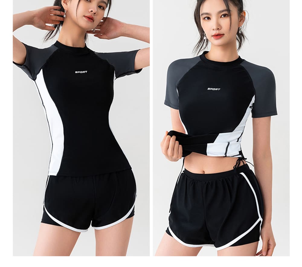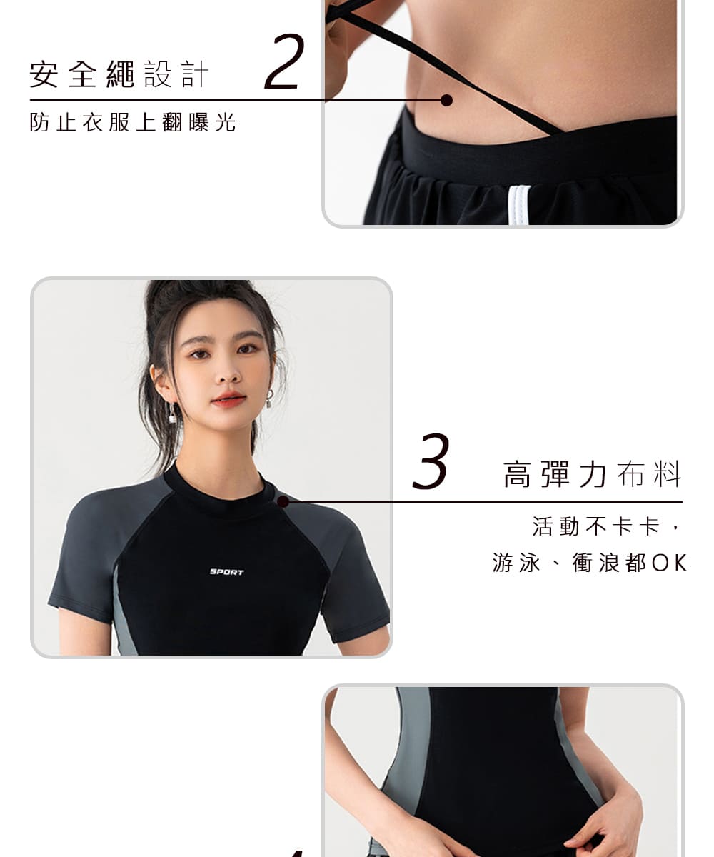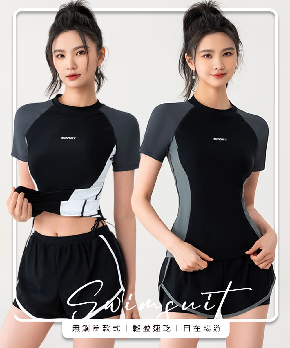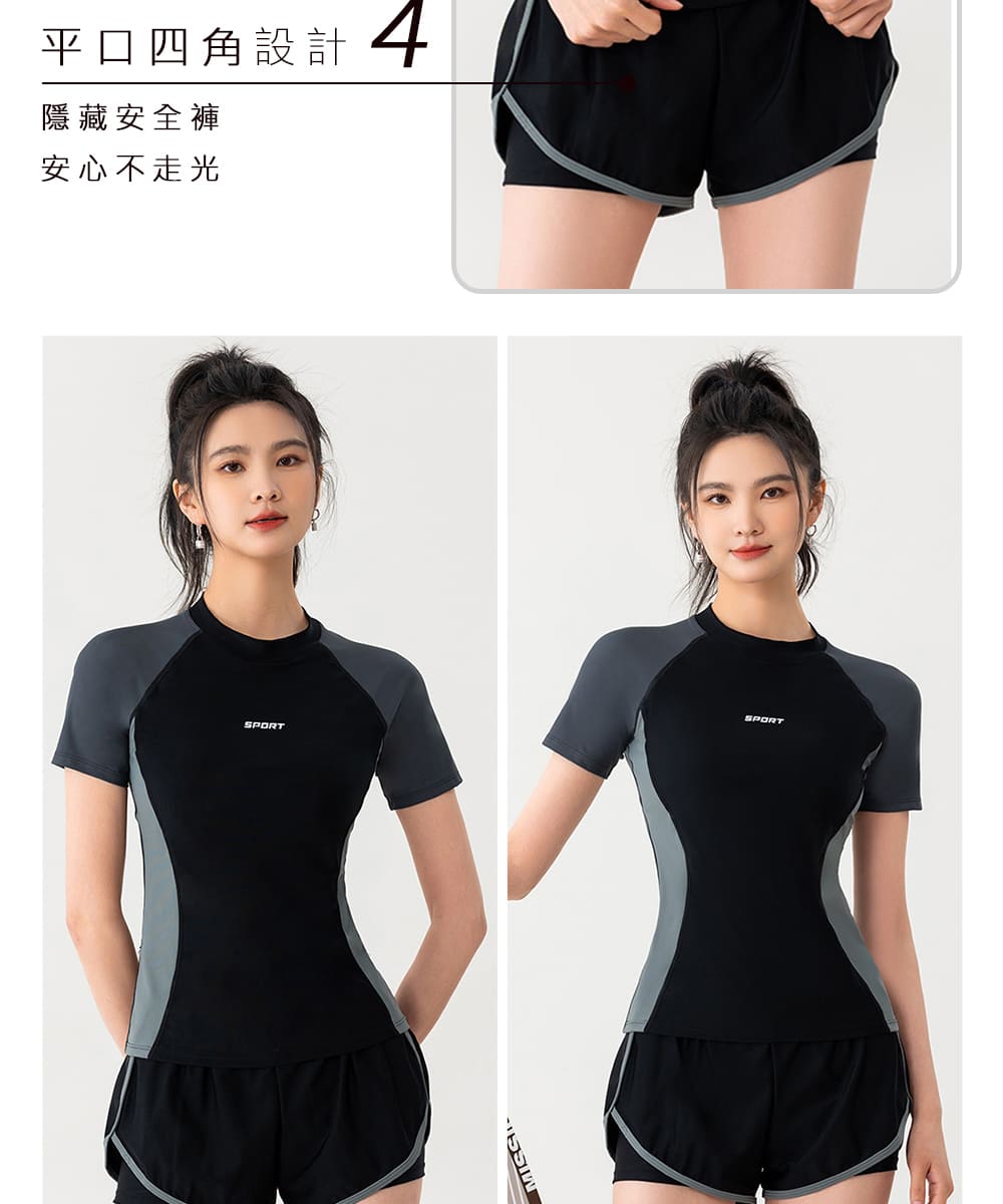 【Kosmiya】1套 專業級 兩件式 短袖防走光短褲 運動泳裝/競速泳裝/溫泉泳裝/保守泳裝(2色/L-2XL)
