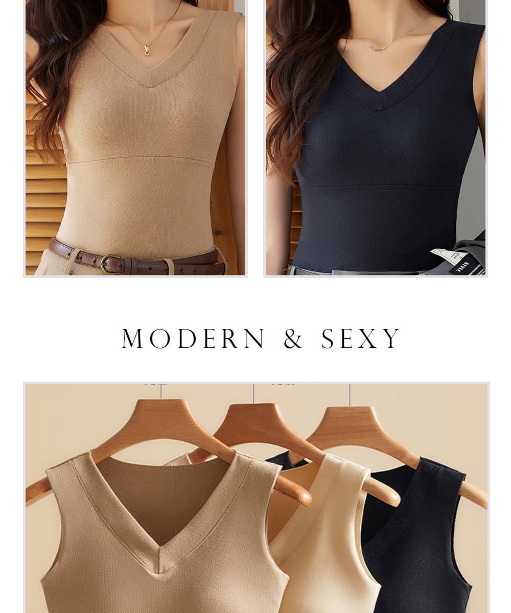 【Kosmiya】3件組 帶罩杯 都會知性V領發熱背心/發熱衣//Bratop/女內衣/無鋼圈內衣/內搭(3色可選/L-XL)
