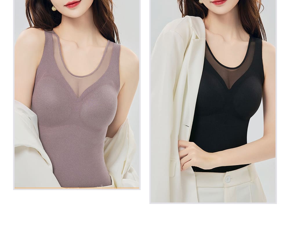 【Kosmiya】3件組 帶罩杯 羊毛蠶絲薄紗發熱背心/發熱衣//Bratop/女內衣/無鋼圈內衣/內搭(3色可選/L-2XL)