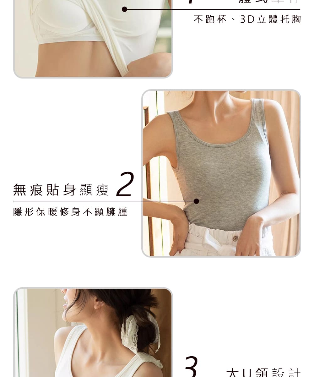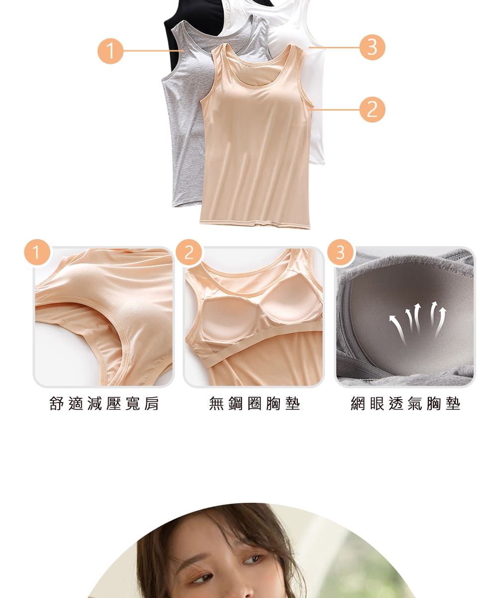 【Kosmiya】3件組 帶罩杯 莫代爾寬肩螺紋罩杯背心/Bratop/女內衣/無鋼圈內衣/內搭/涼感背心(3色可選/M-XL)