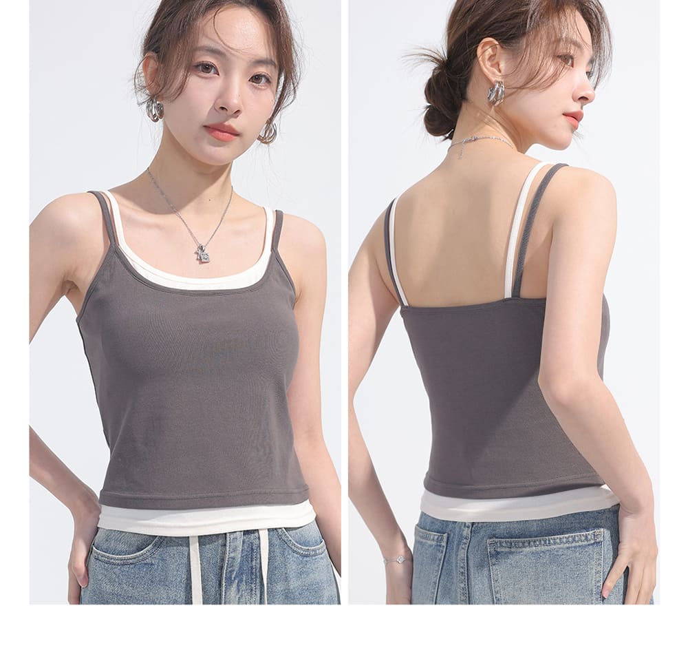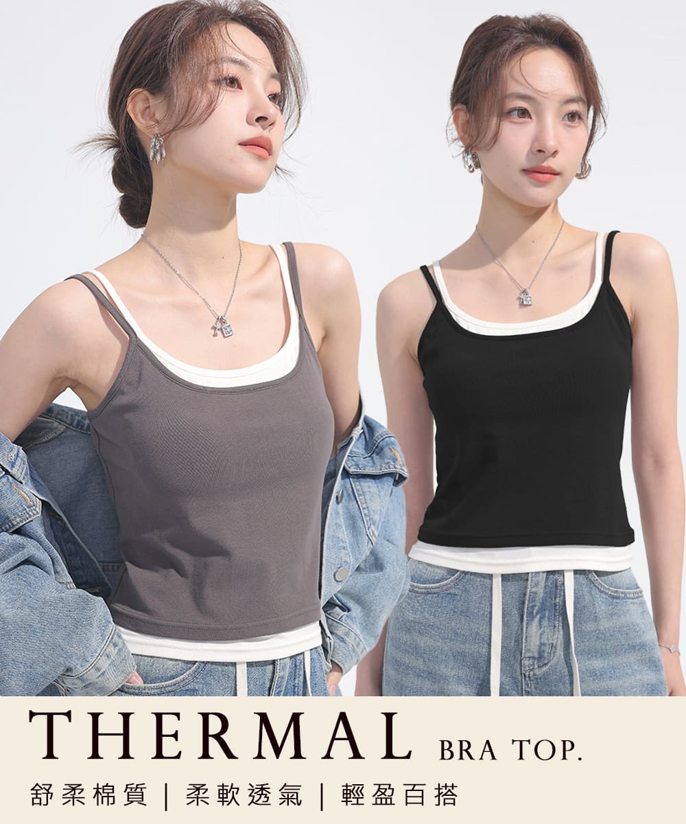 【Kosmiya】2件組 帶罩杯 經典撞色細肩罩杯背心/Bratop/女內衣/無鋼圈內衣/內搭/涼感背心(2色可選/M-XL)