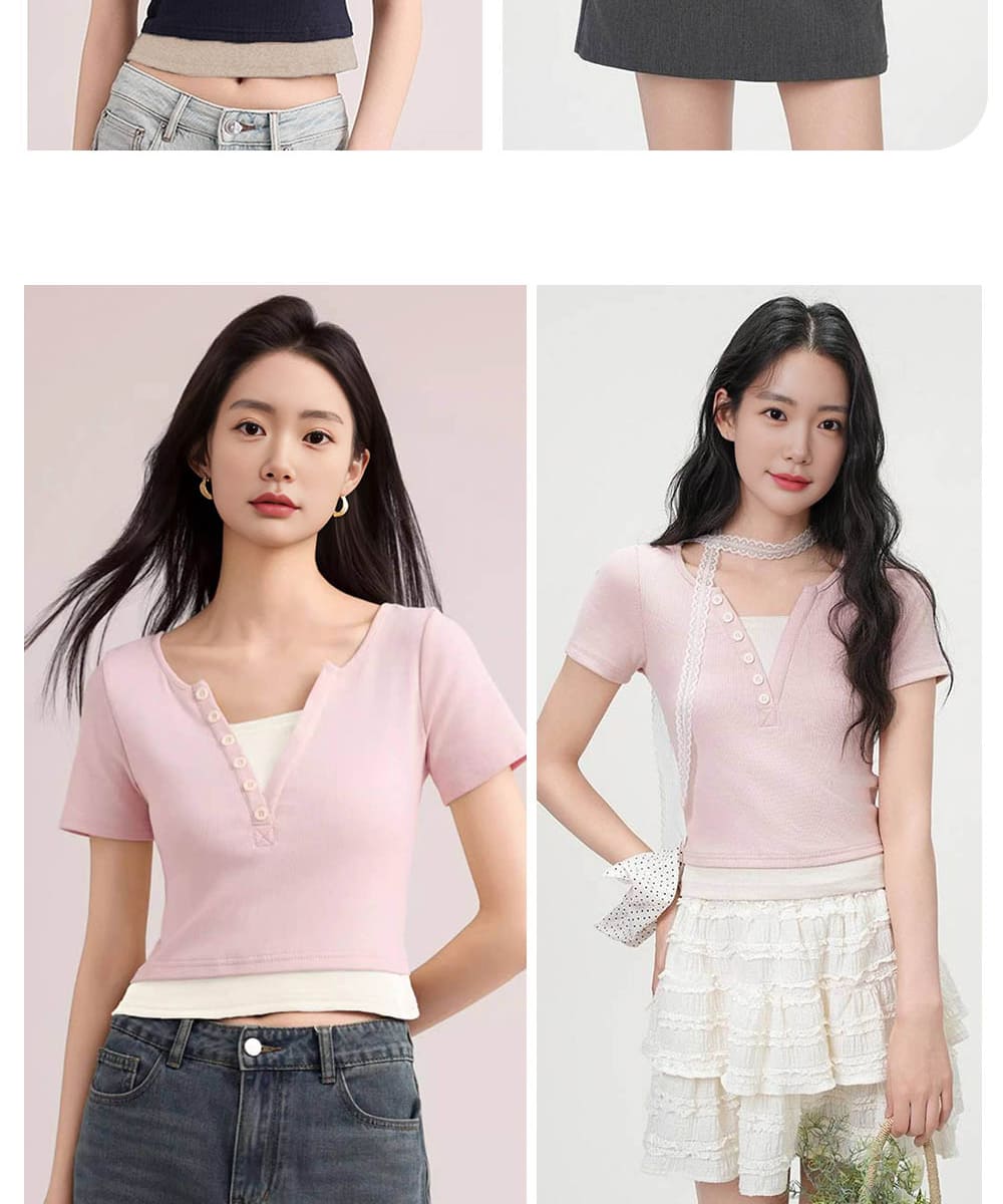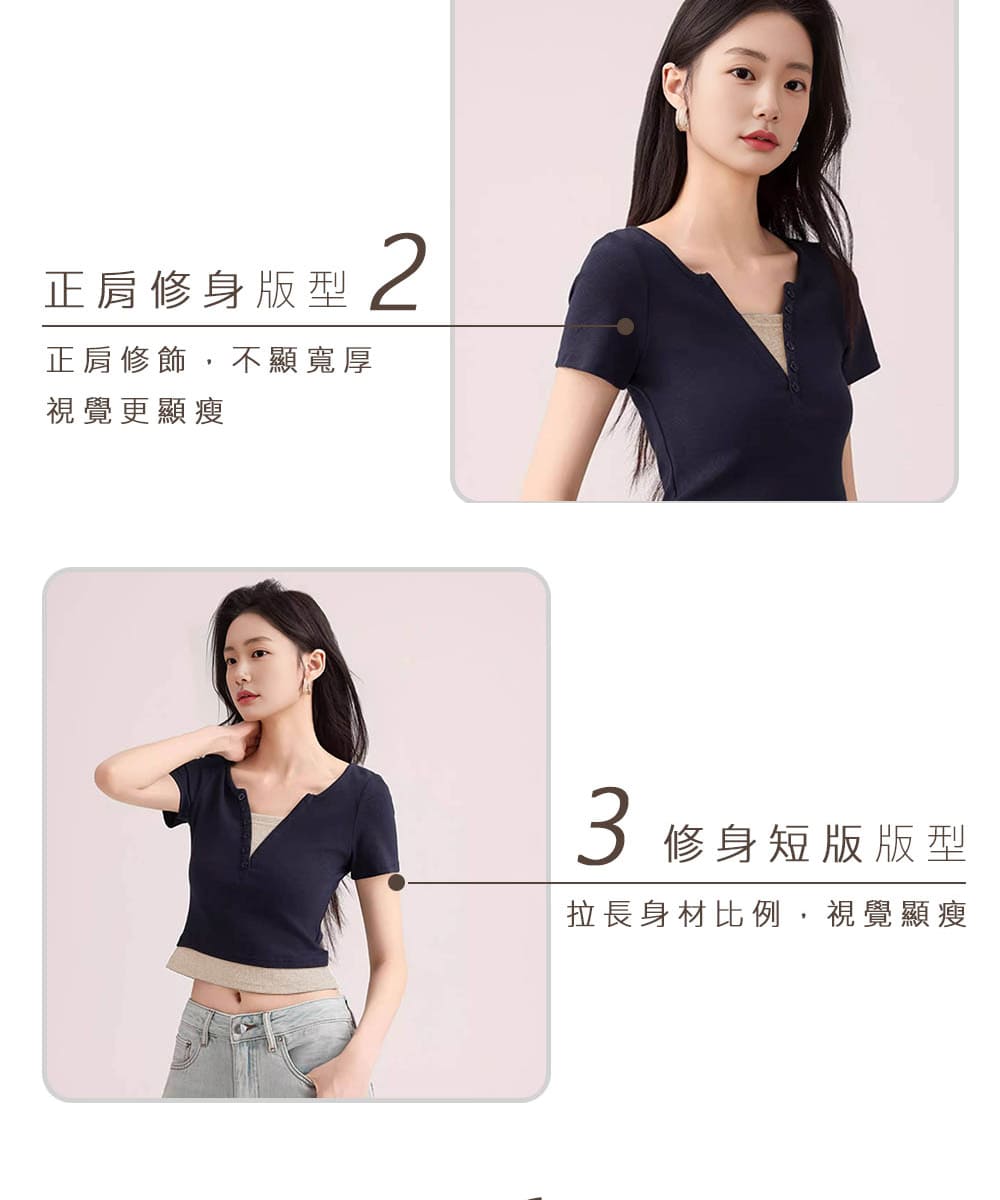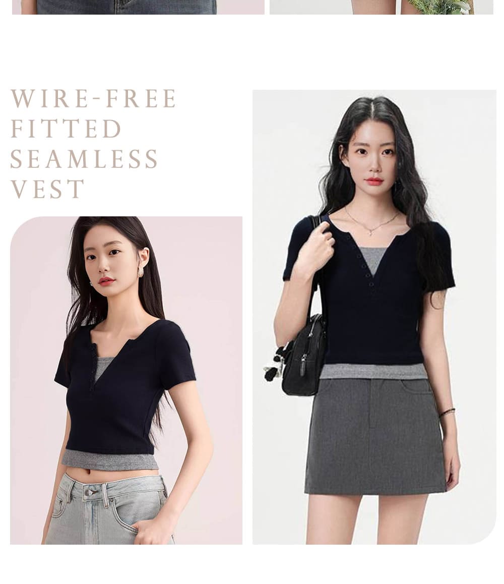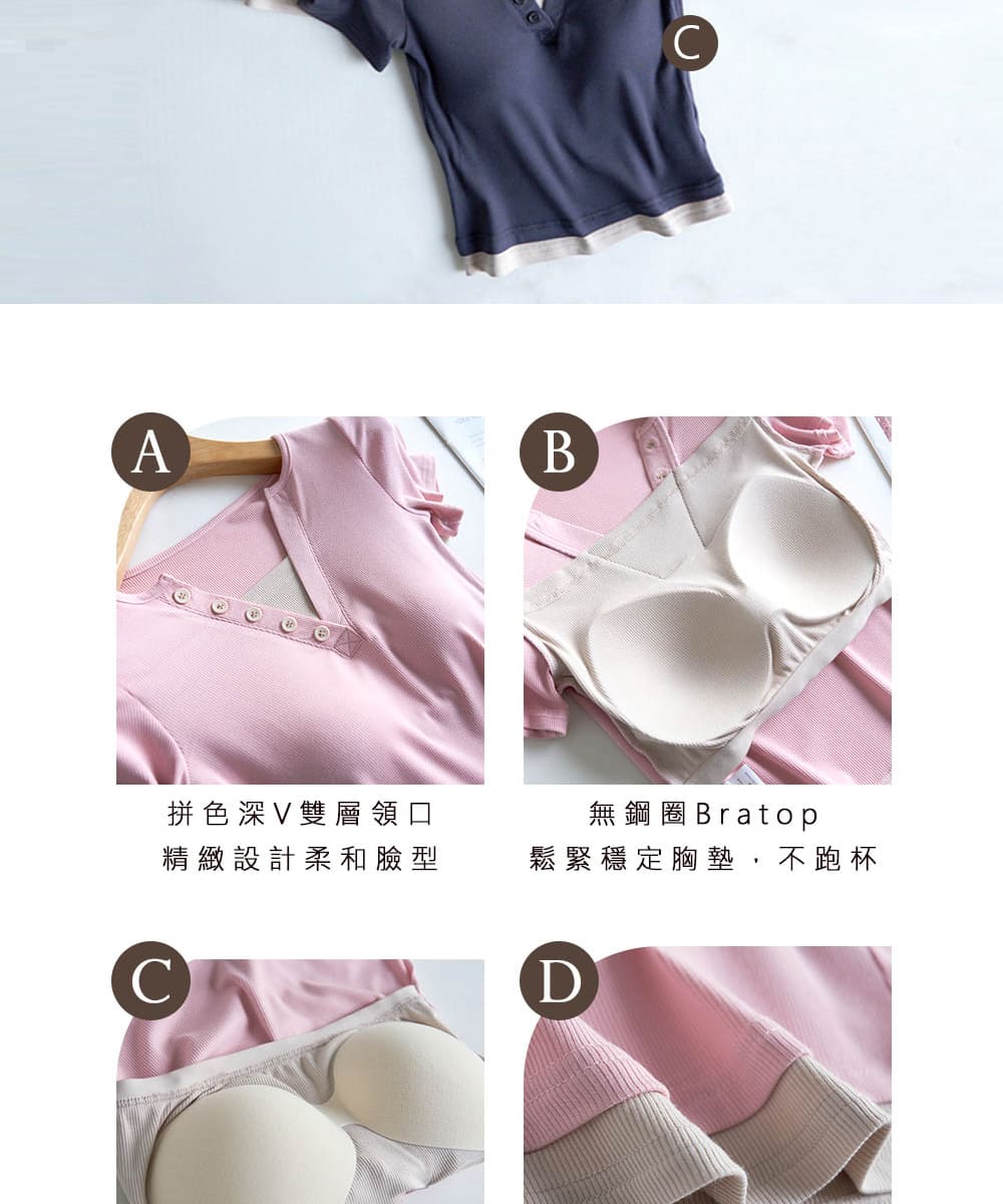 【Kosmiya】2件組 帶罩杯 拼接V領正肩短袖襯墊上衣/小可愛/BRATOP/無鋼圈內衣/女內衣(3色可選/M-XL)