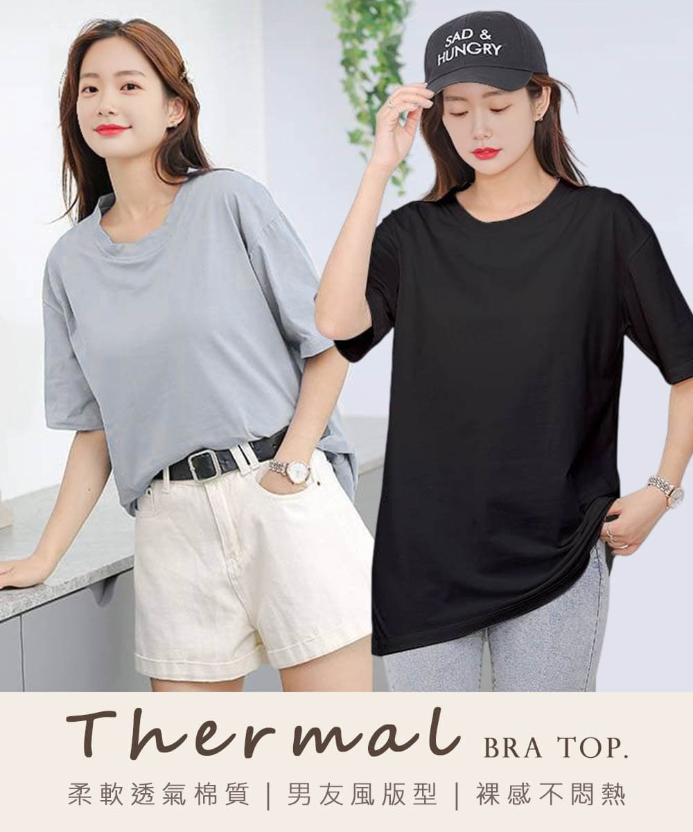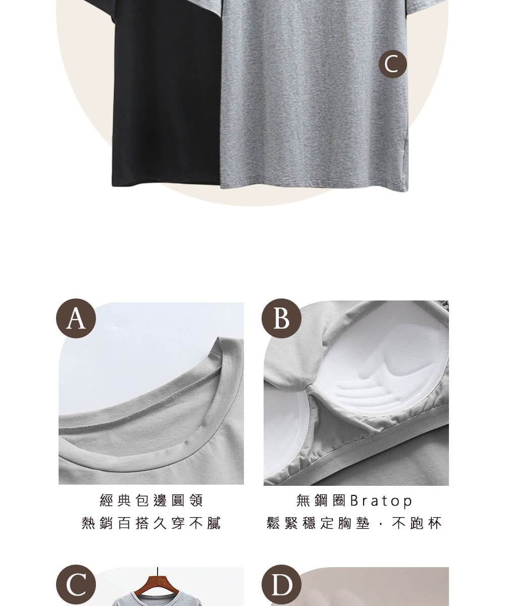 【Kosmiya】2件組 帶罩杯 大尺碼極簡寬鬆短袖襯墊上衣/小可愛/BRATOP/無鋼圈內衣/女內衣(2色可選/L-2XL)