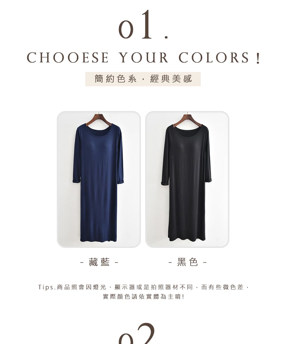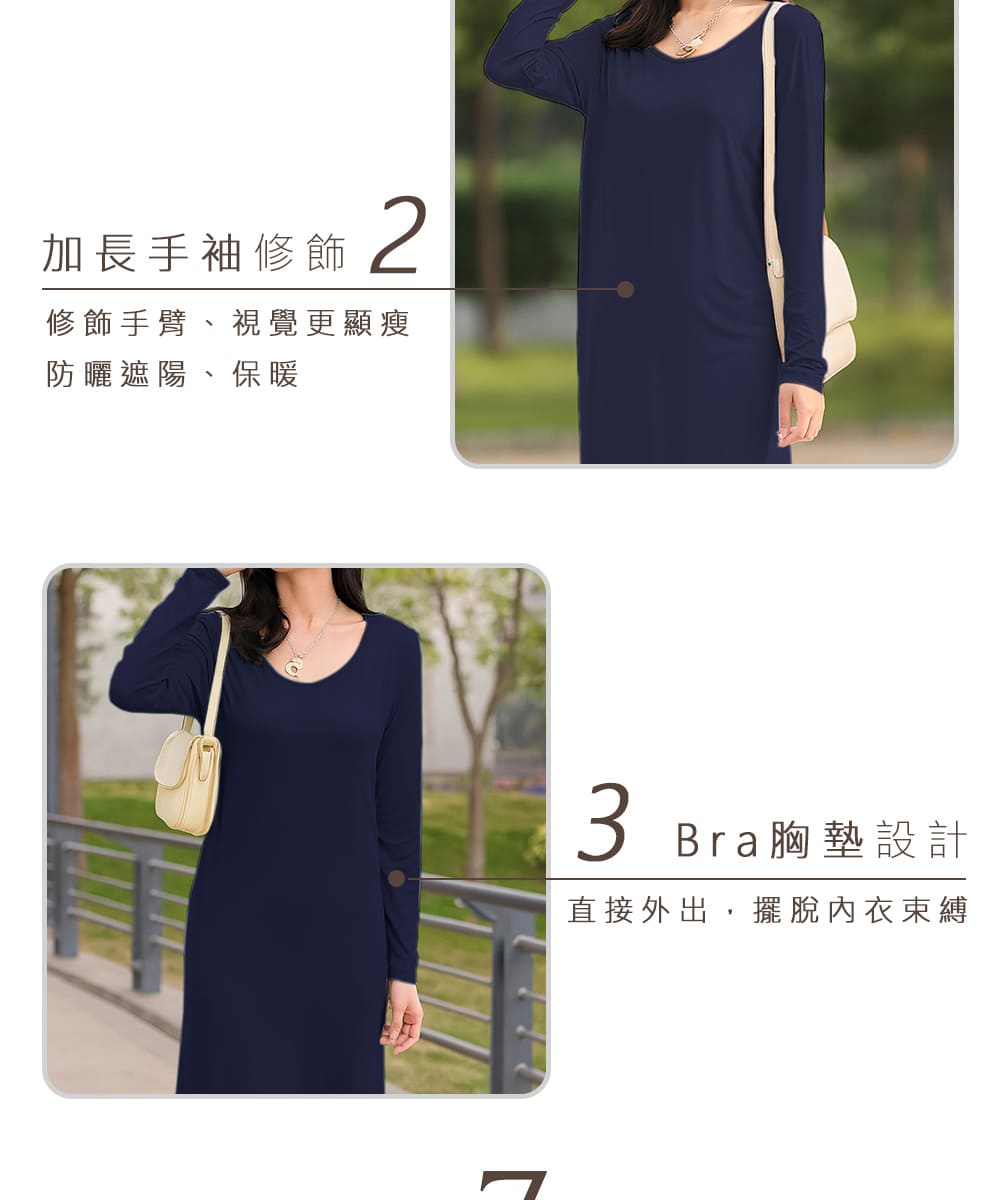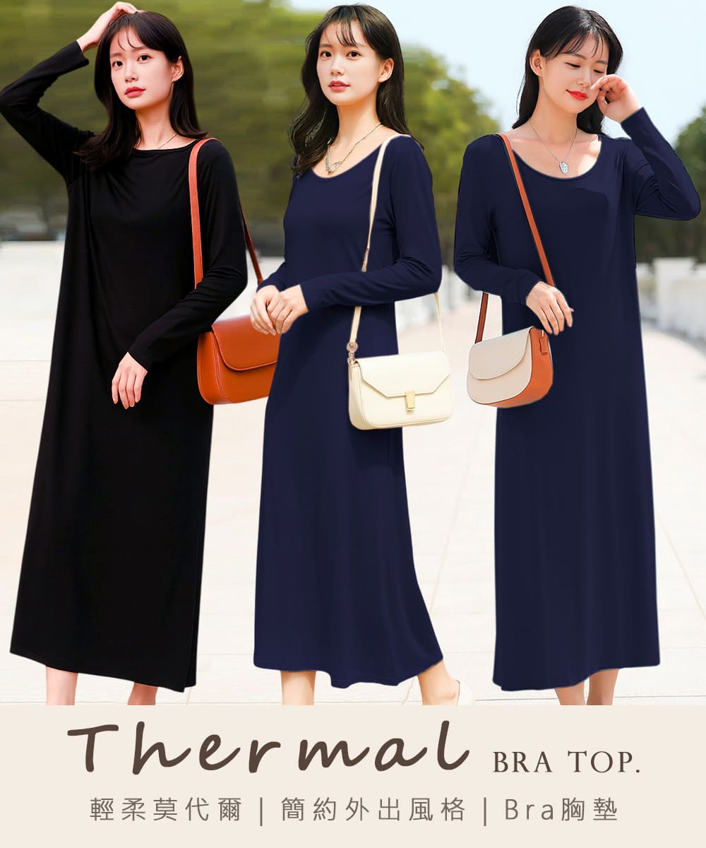 【Kosmiya】1件 鬆緊胸墊 莫代爾 長袖胸墊洋裝/BRATOP/無鋼圈內衣/洋裝/長裙/胸墊裙(2色可選/L-2XL)