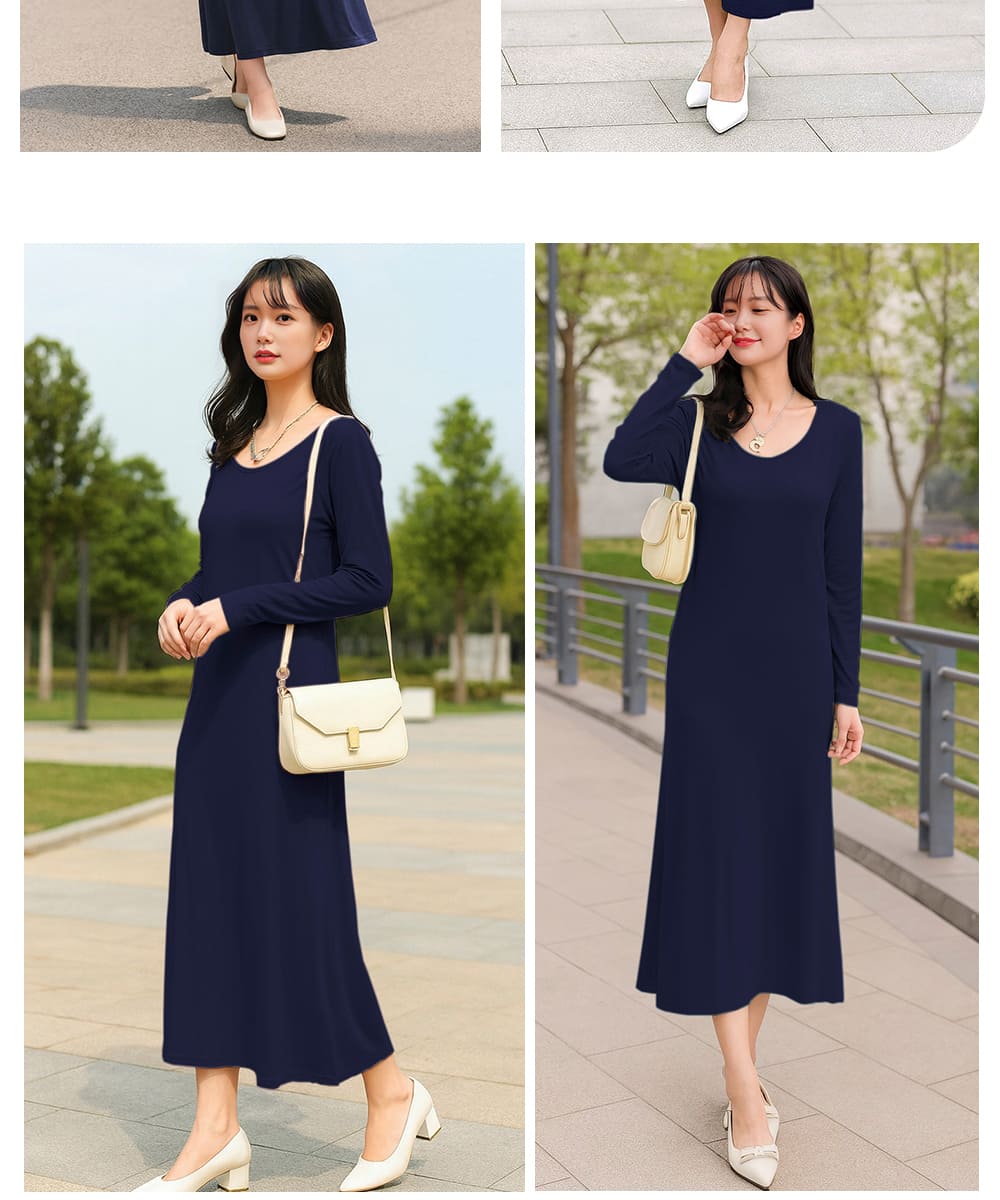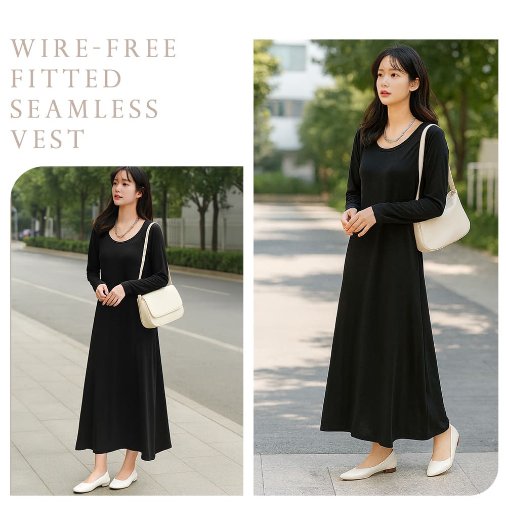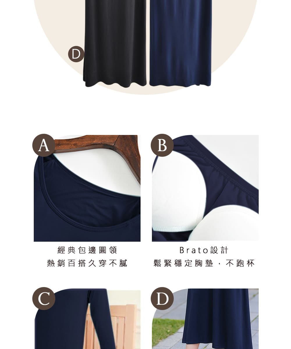【Kosmiya】1件 鬆緊胸墊 莫代爾 長袖胸墊洋裝/BRATOP/無鋼圈內衣/洋裝/長裙/胸墊裙(2色可選/L-2XL)