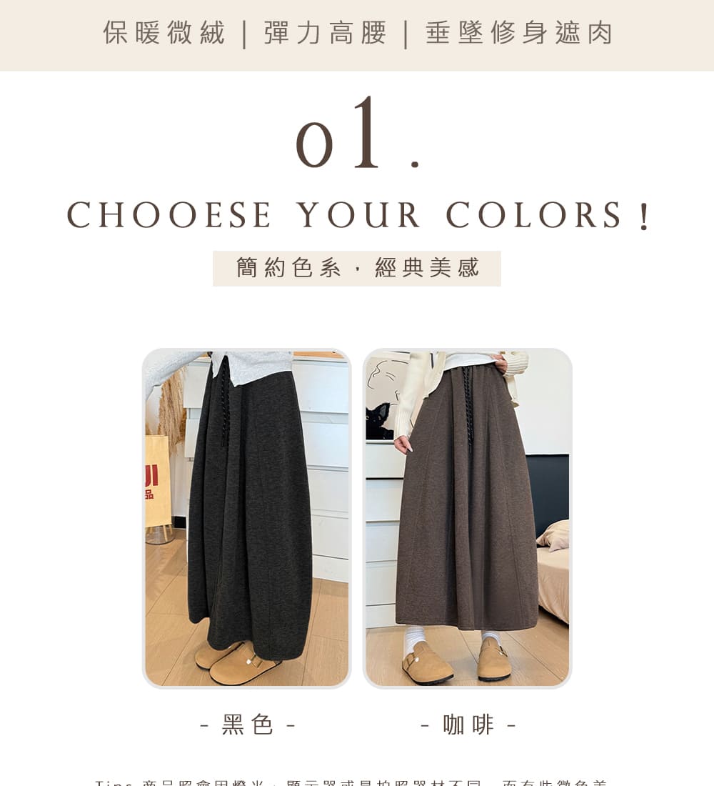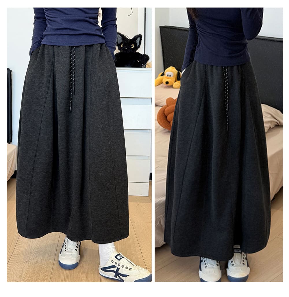 【Kosmiya】1件 美式高腰顯瘦垂感休閒糯米南瓜裙 花苞裙/高腰裙/長裙/休閒裙/保暖裙(2色可選/M-XL)