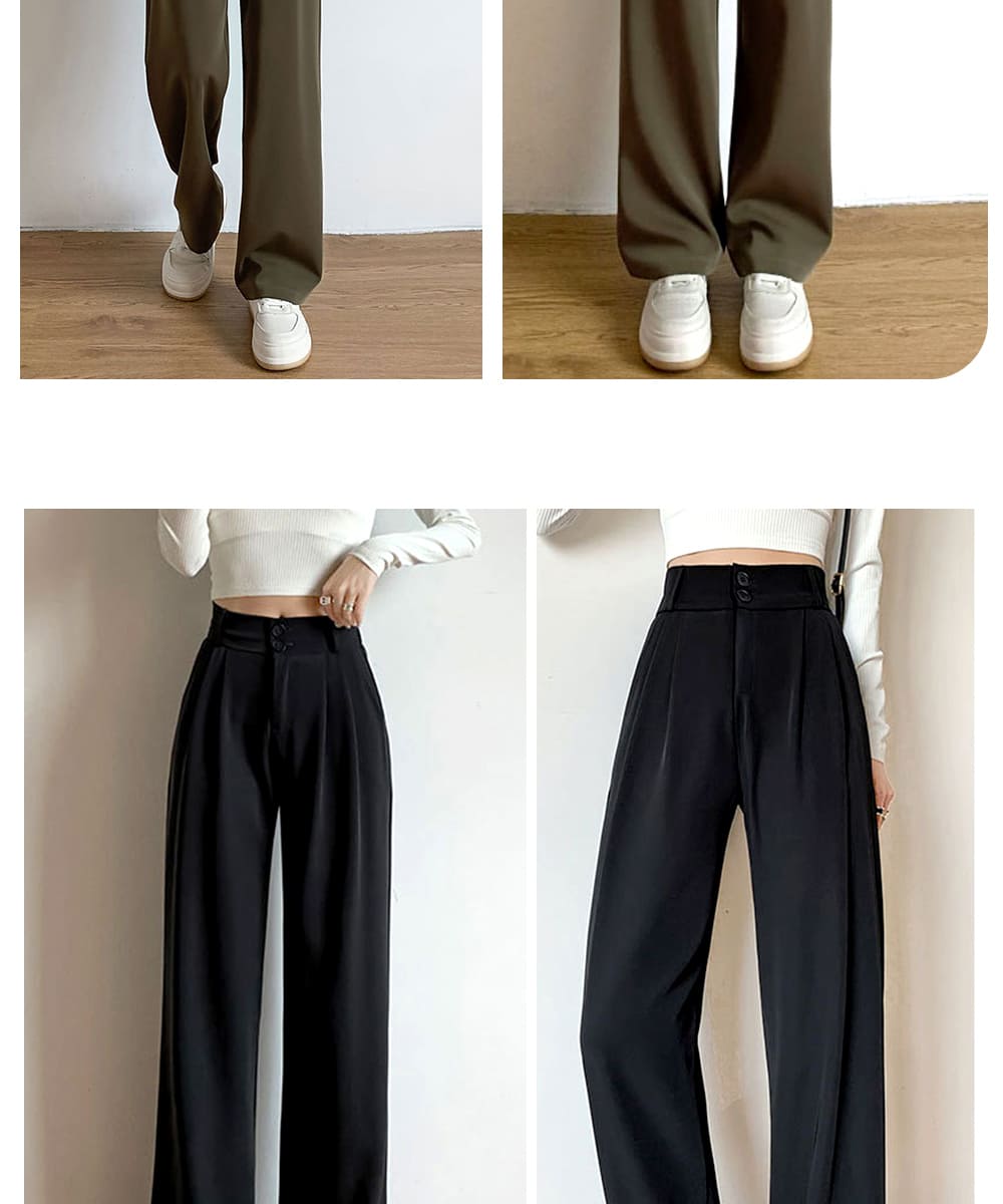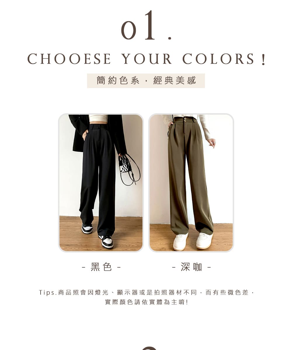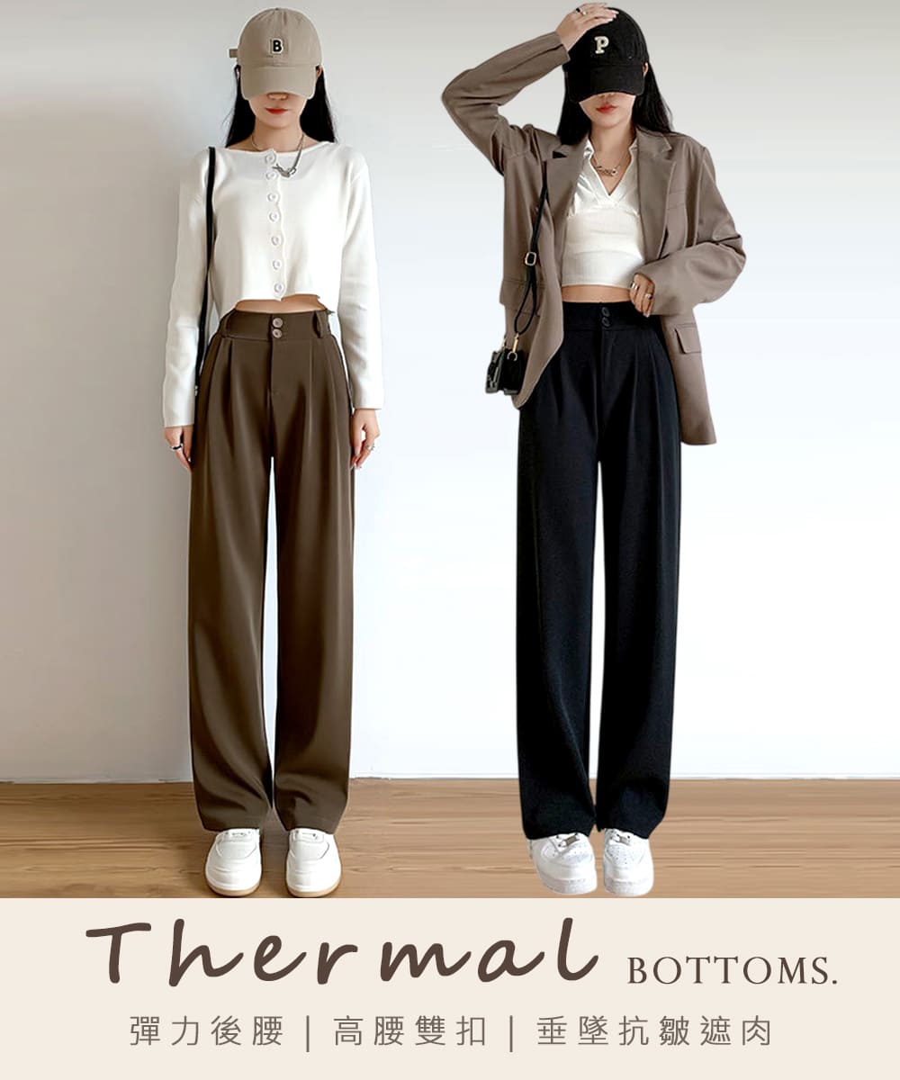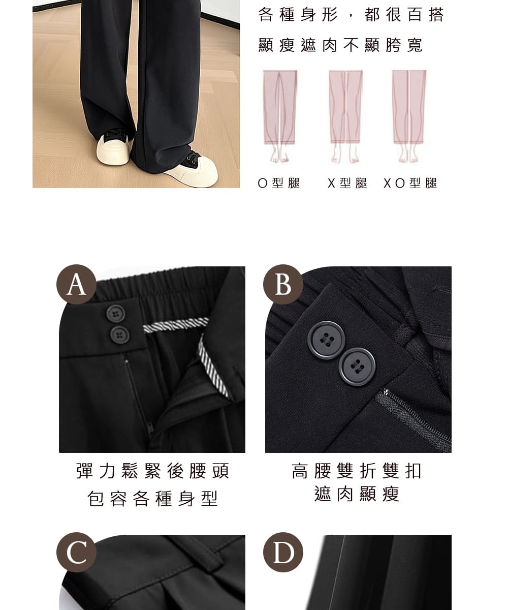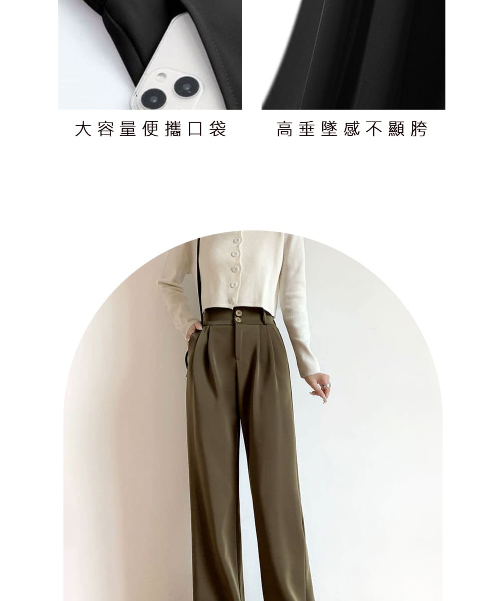 【Kosmiya】1件 高腰顯瘦垂墜質感雙扣西裝褲 直筒褲/高腰褲/長褲/保暖褲/闊腿褲/落地褲(2色可選/M-2XL)