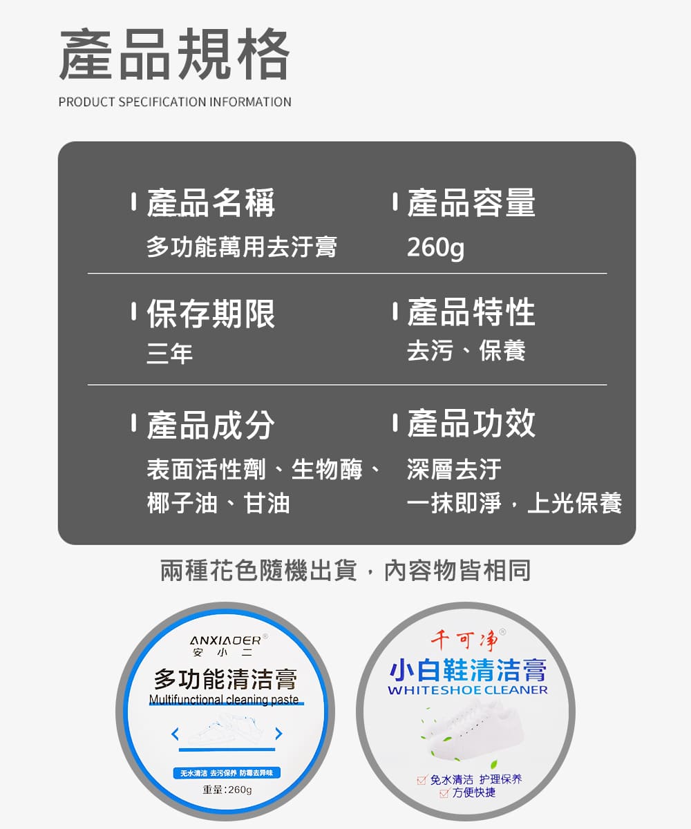 規格:260g 產地:中國 成份:表面活性劑+生物酶+椰子油+甘油 包裝數量:260g/盒 總效期:三年