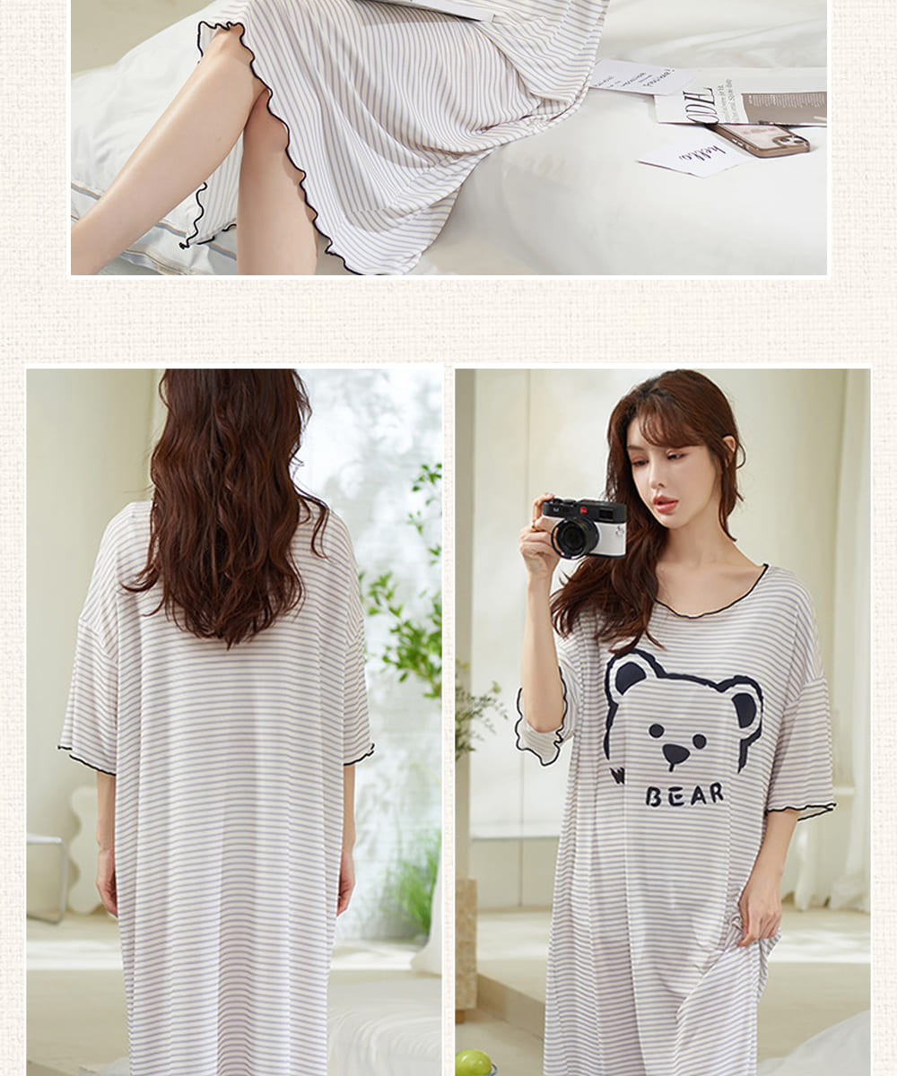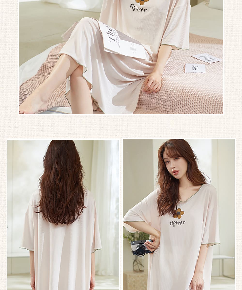 【Kosmiya】1件 寬鬆莫代爾罩杯睡裙/寬鬆睡衣/居家服/涼感睡衣/冰涼睡衣/居家套裝(4色可選/均碼/加大碼)