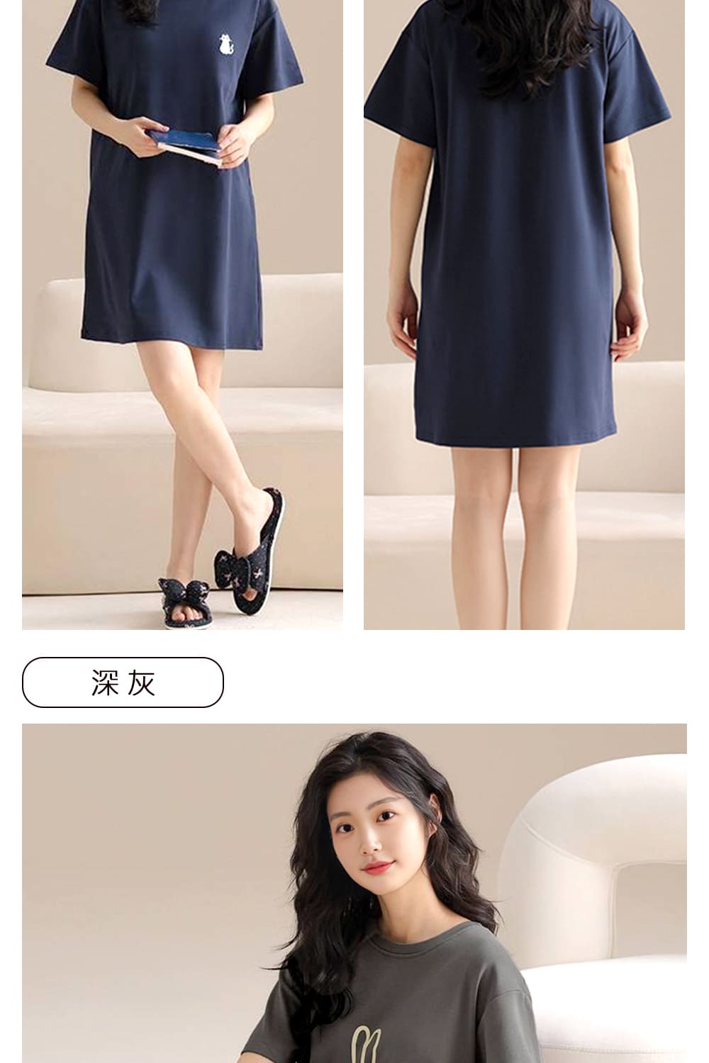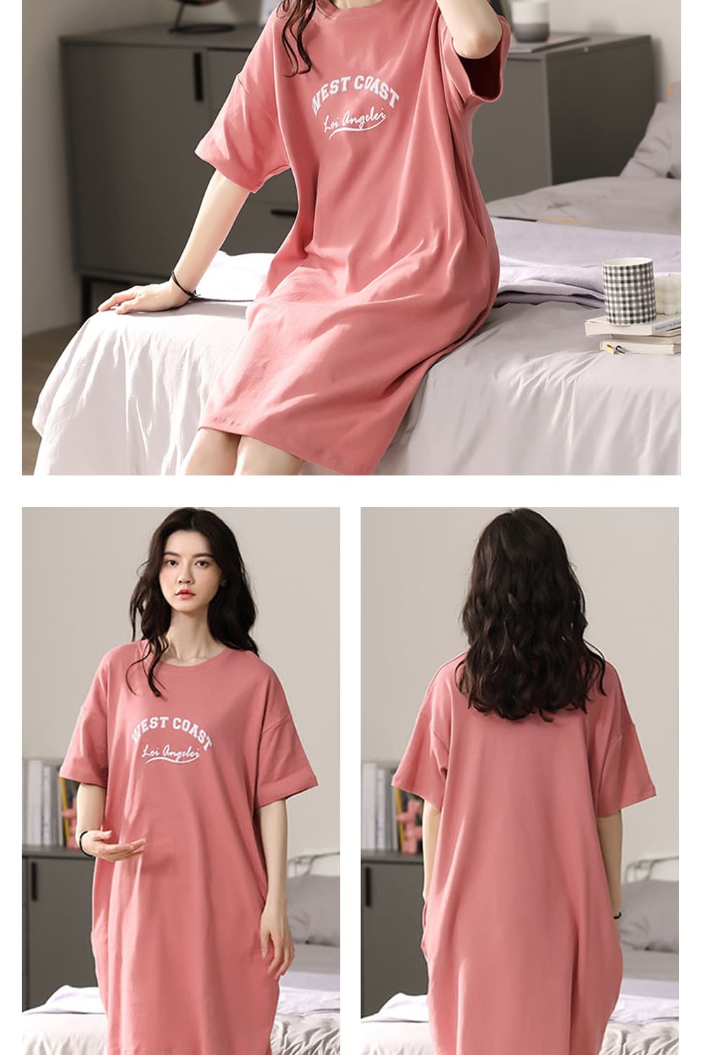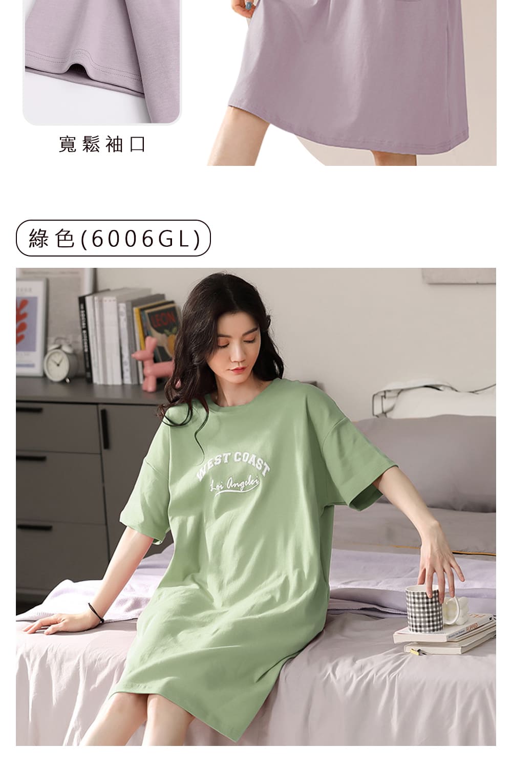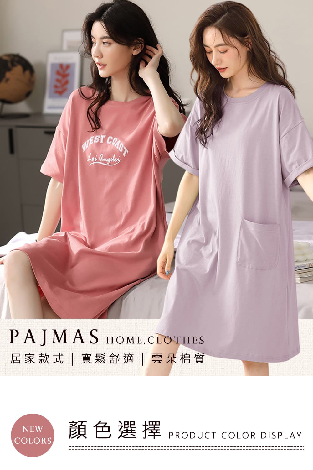 【Kosmiya】1件 棉質字母印花睡裙/女睡衣/睡衣/居家服/連身洋裝/洋裝(2色可選/均碼/加大碼)