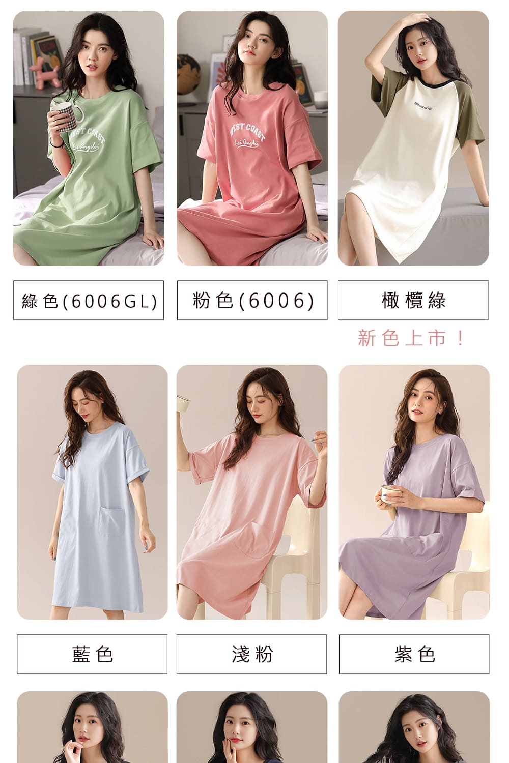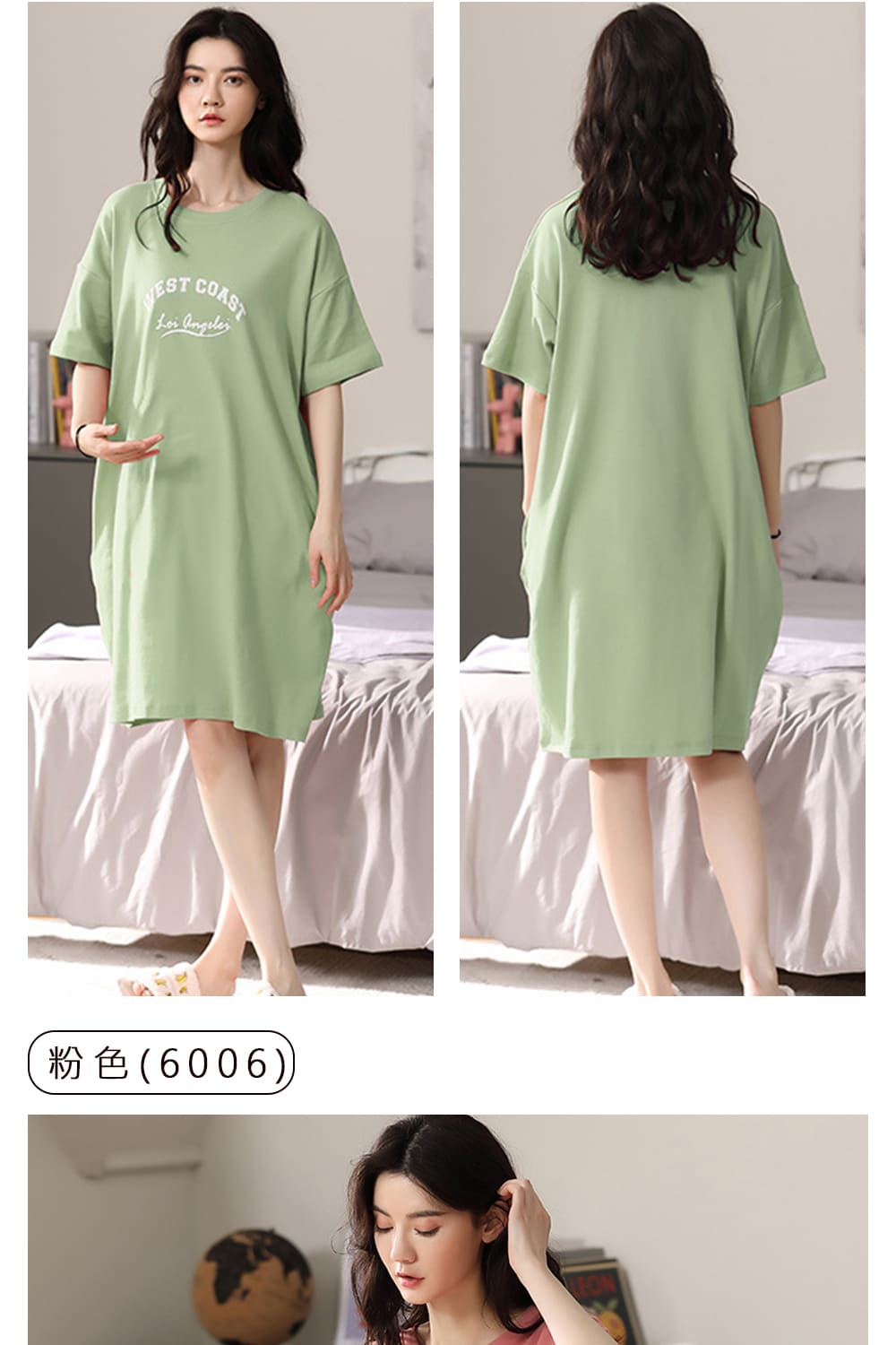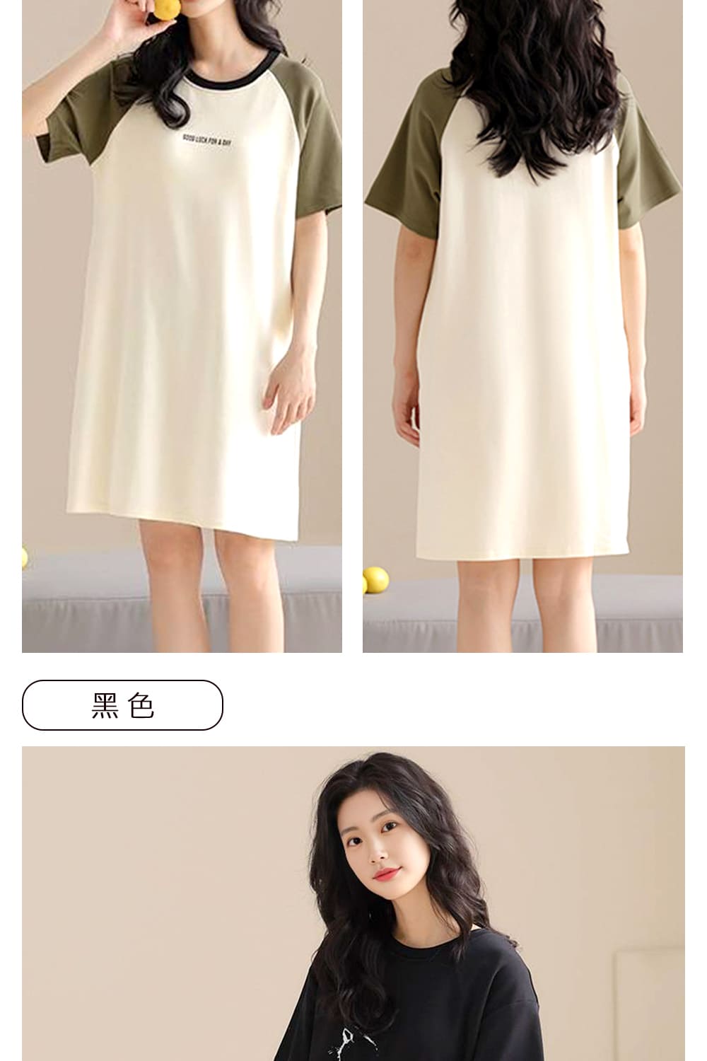 【Kosmiya】1件 棉質字母印花睡裙/女睡衣/睡衣/居家服/連身洋裝/洋裝(2色可選/均碼/加大碼)