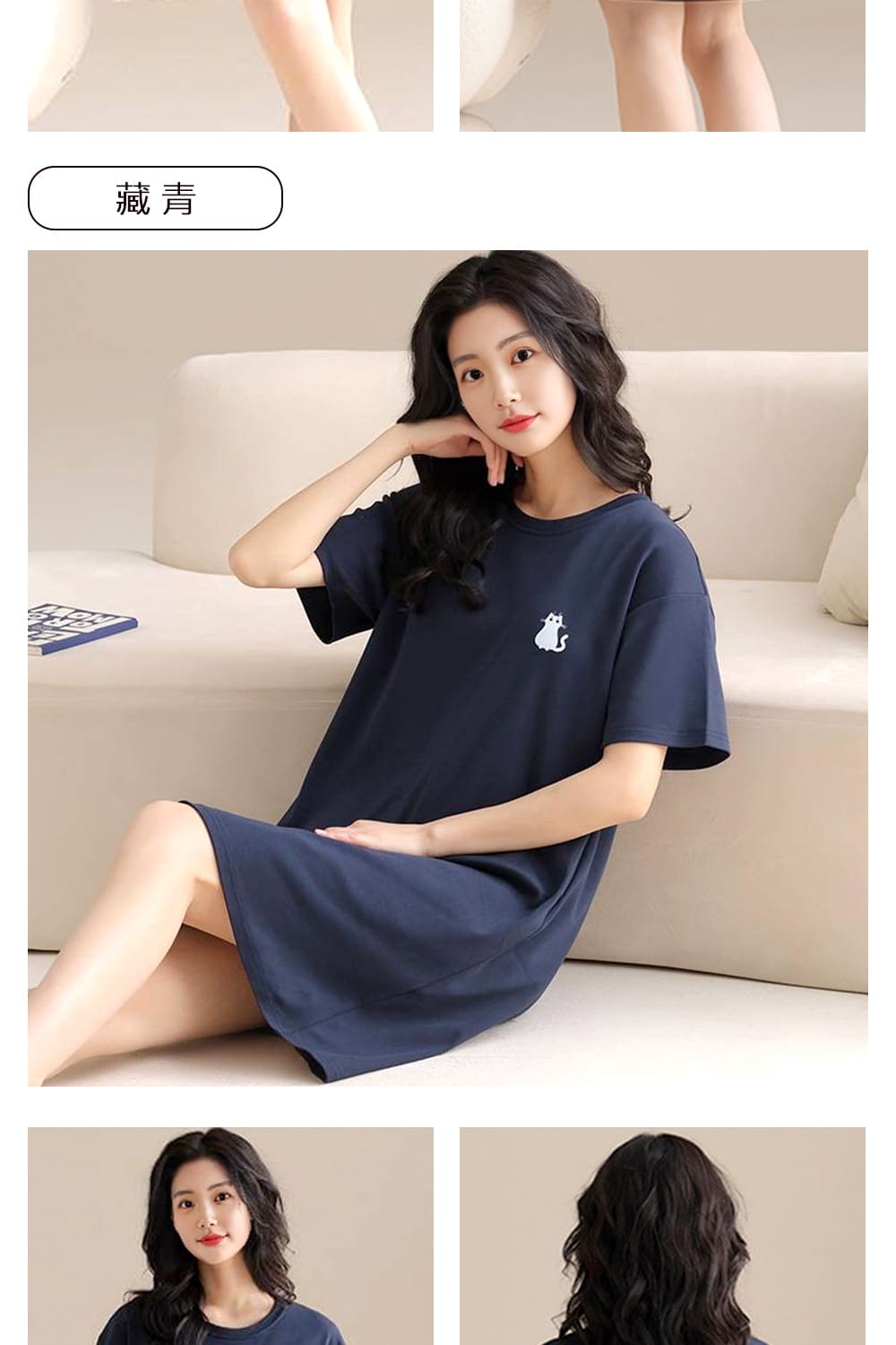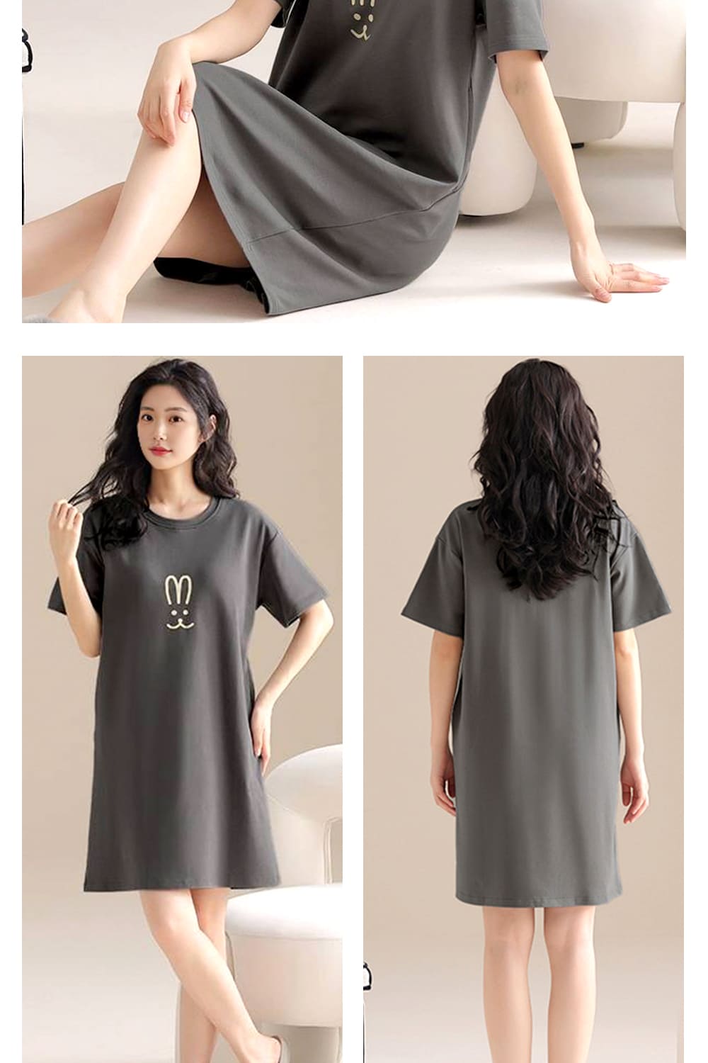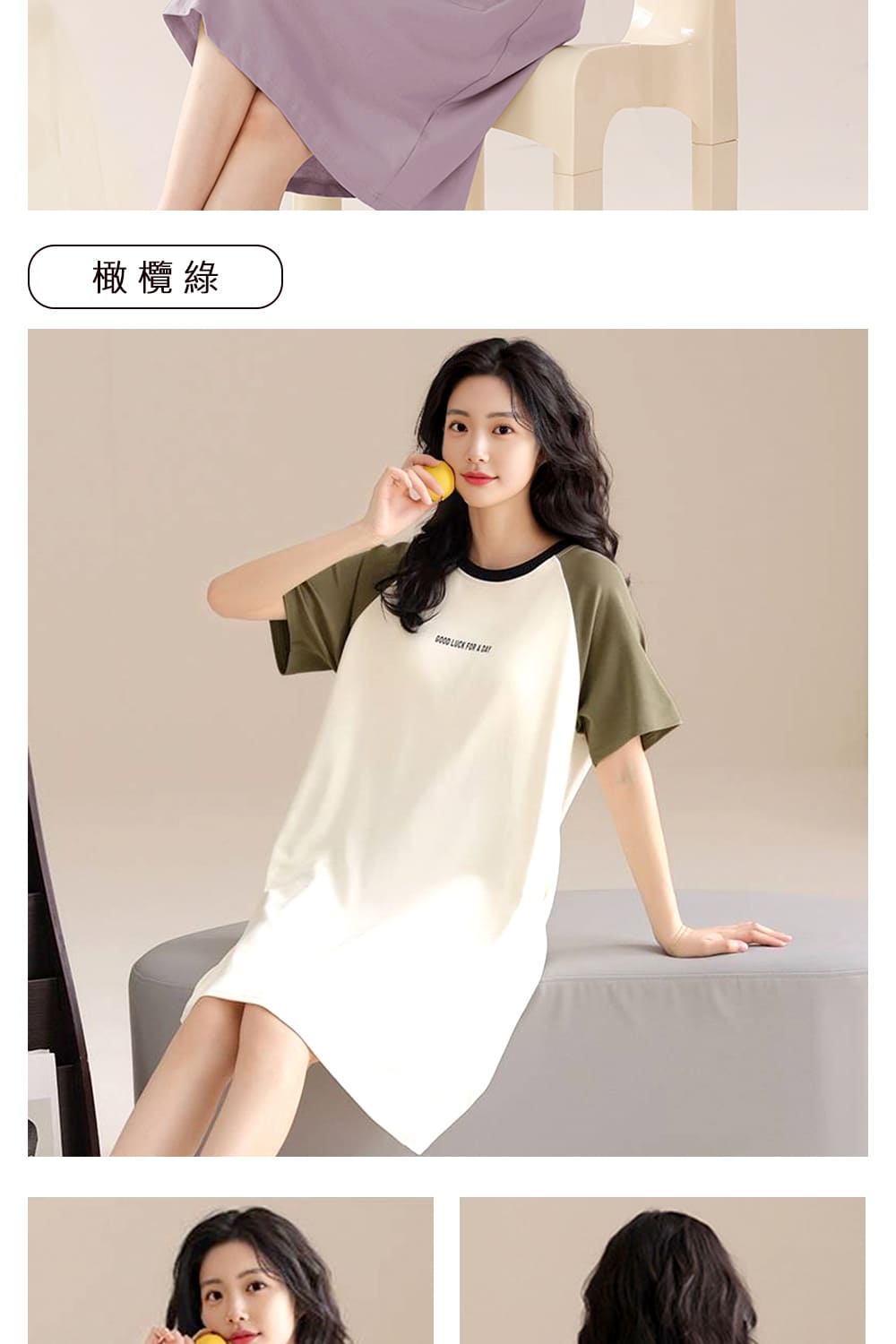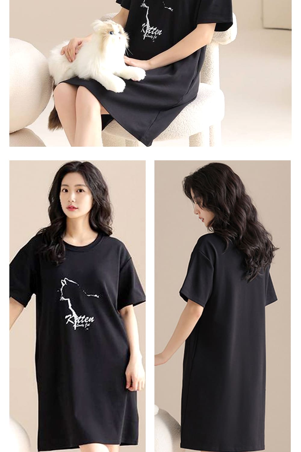 【Kosmiya】1件 棉質字母印花睡裙/女睡衣/睡衣/居家服/連身洋裝/洋裝(2色可選/均碼/加大碼)