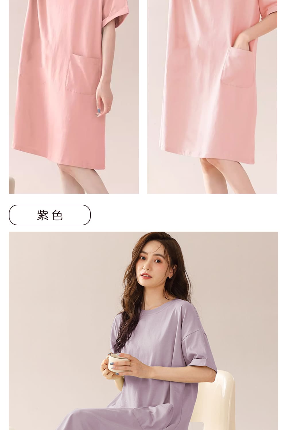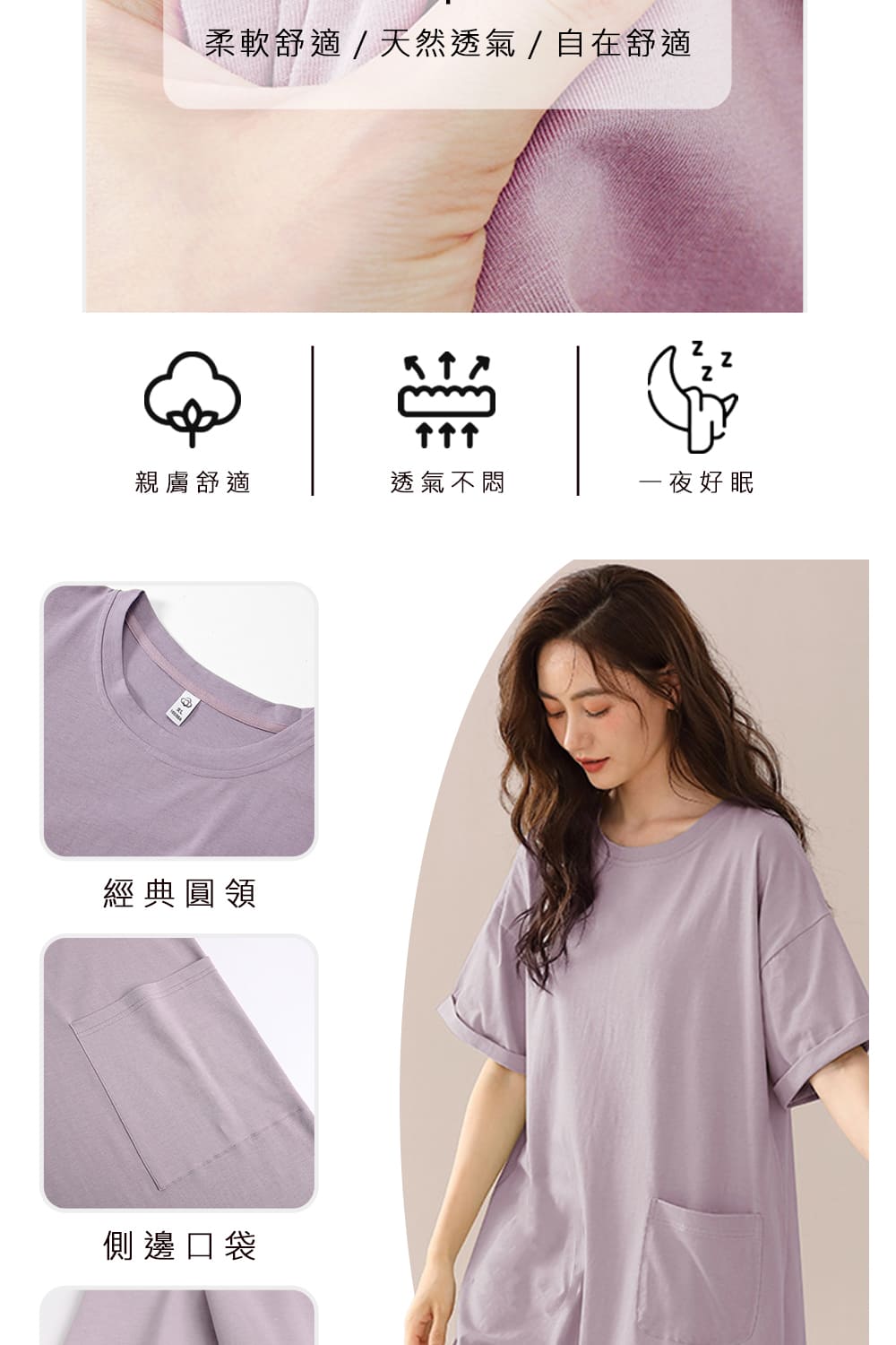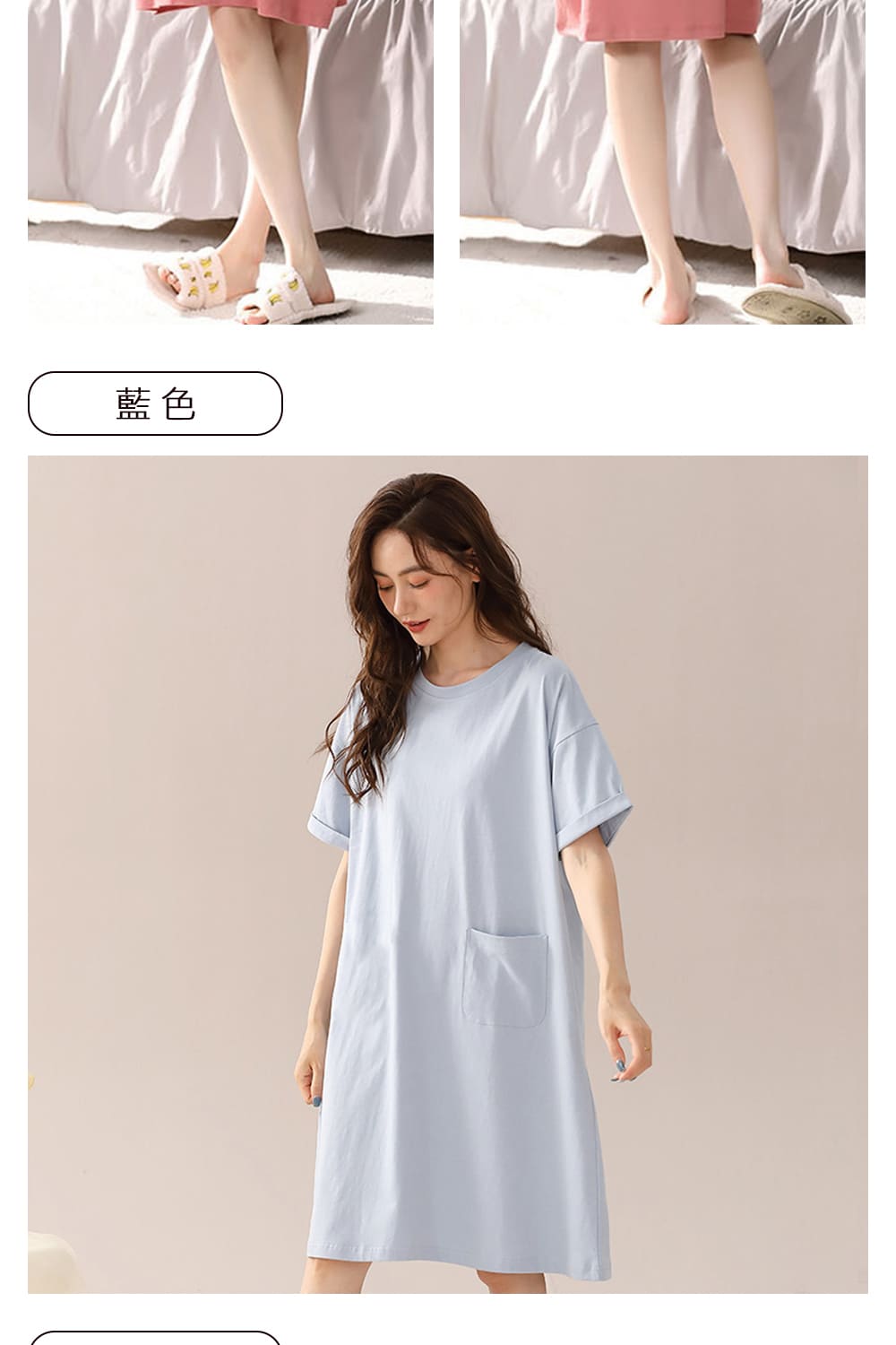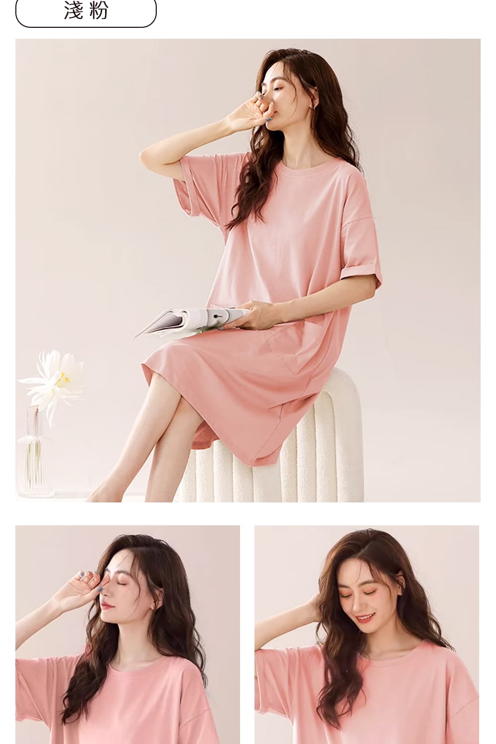【Kosmiya】1套 帶胸墊 棉質 簡約甜心短袖睡裙/女睡衣/睡裙/居家服/連身洋裝/洋裝(2色可選/均碼/加大碼)