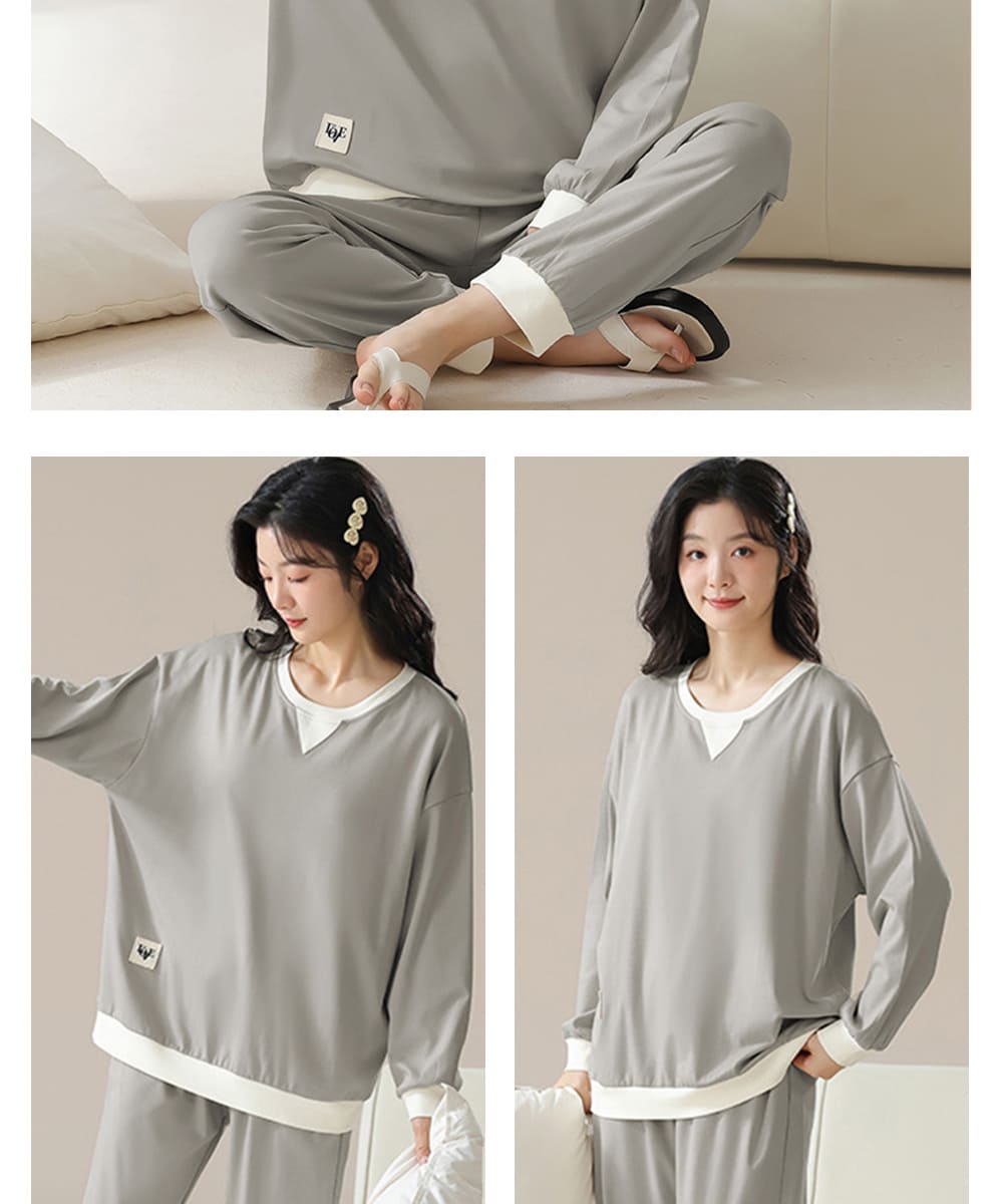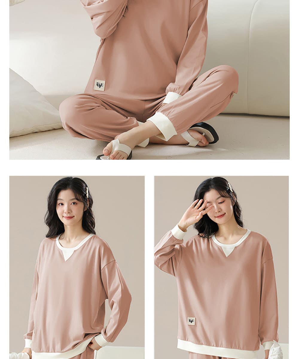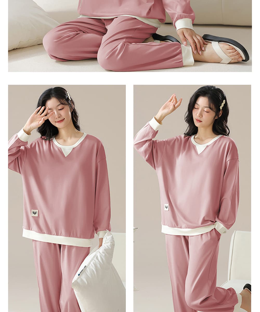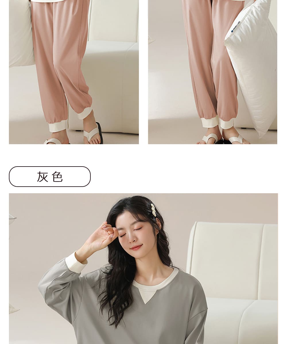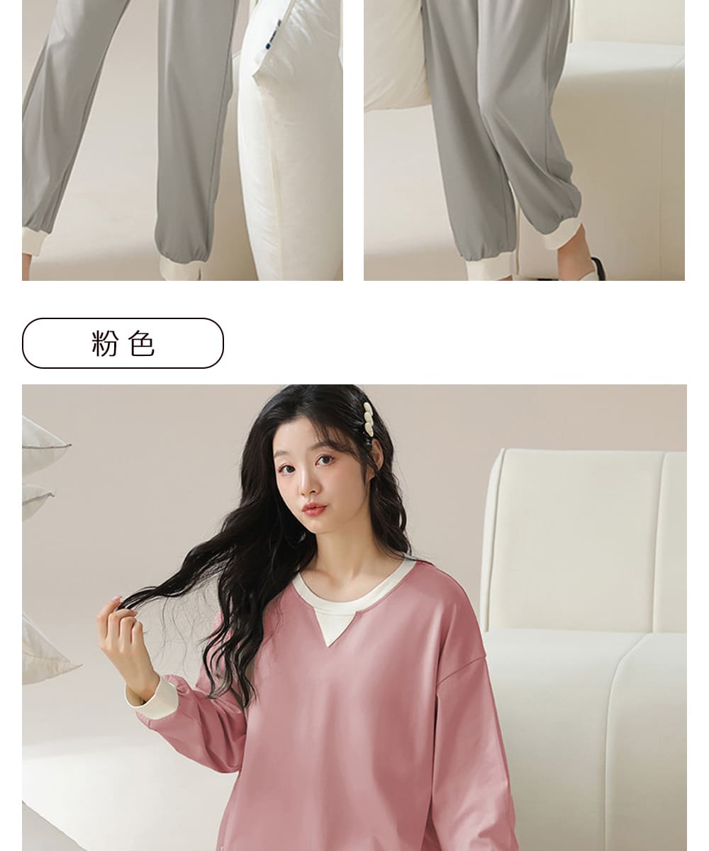 【Kosmiya】1套 帶胸墊 棉質拼接長袖睡衣/女睡衣/居家服/保暖睡衣/睡衣套裝(3色可選/均碼/加大碼)