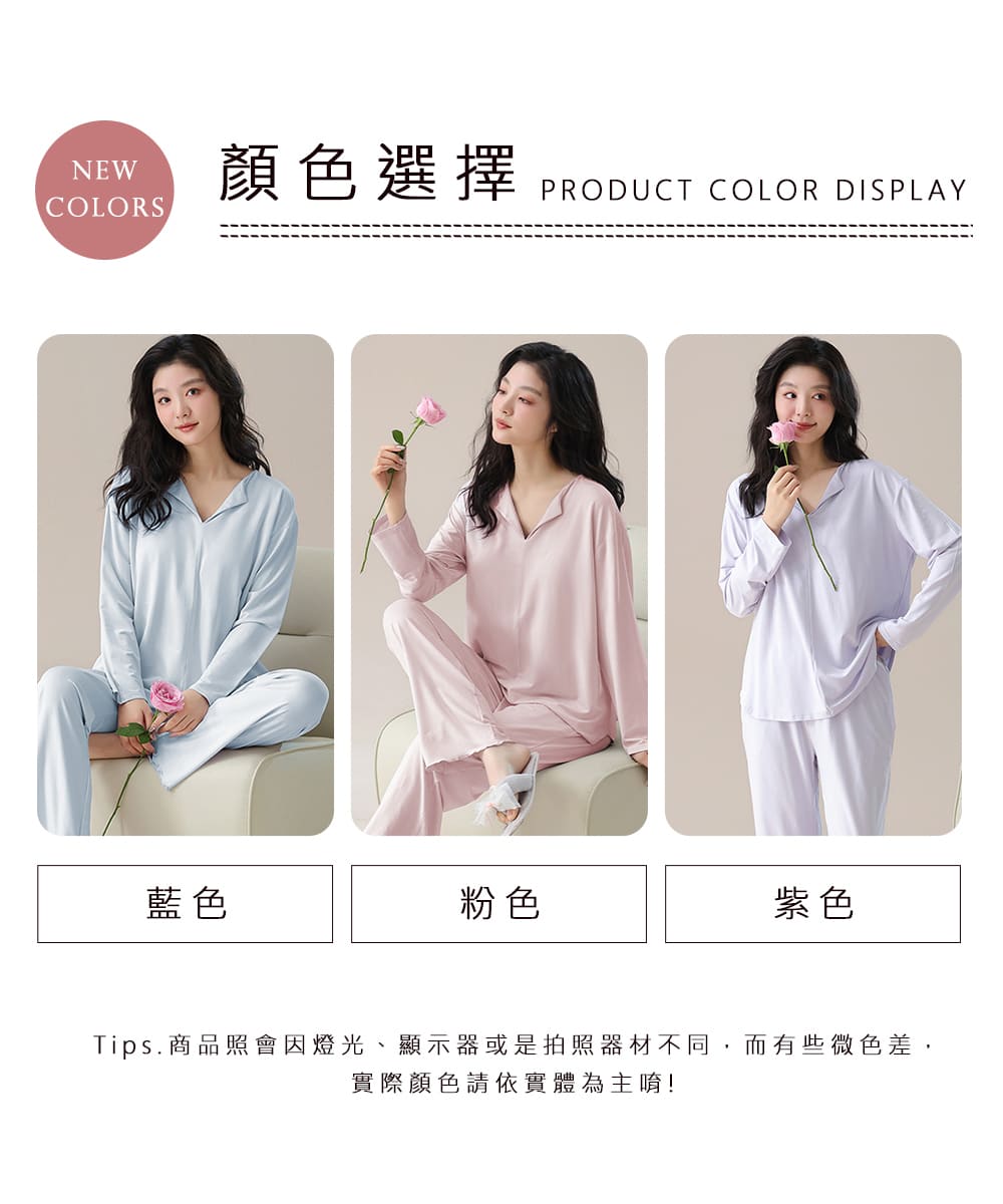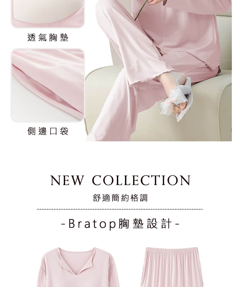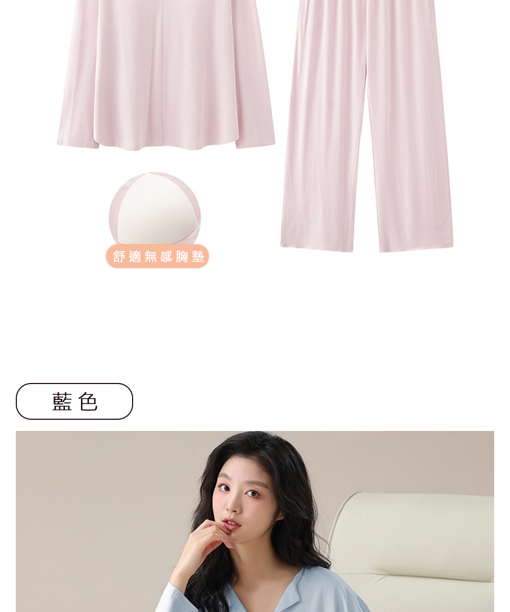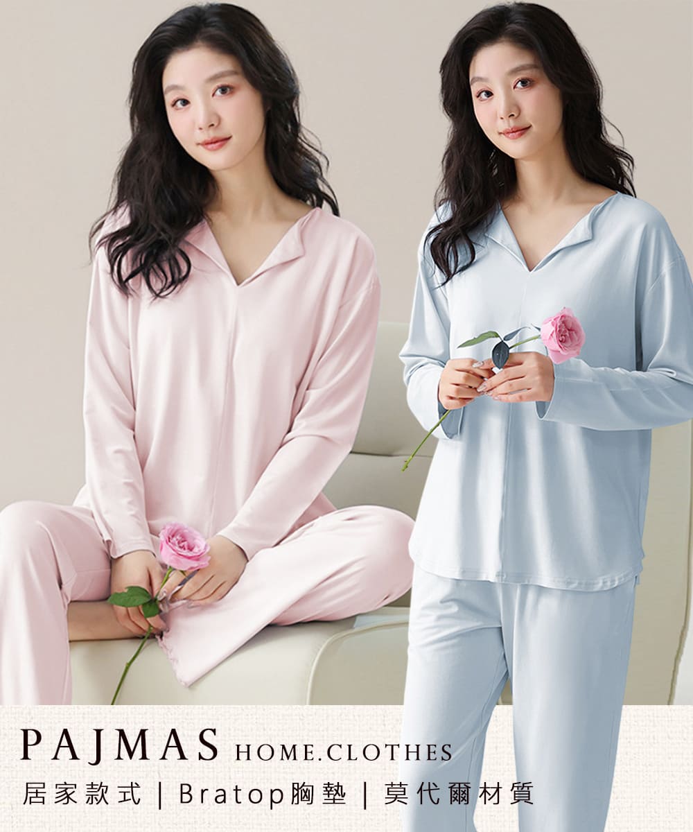 【Kosmiya】1套 帶胸墊 莫代爾 浪漫簡約長袖睡衣/女睡衣/居家服/睡衣套裝(3色可選/均碼/加大碼)