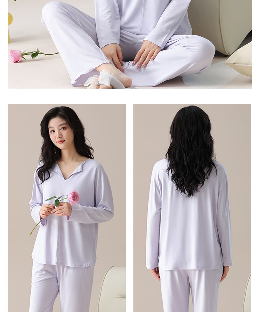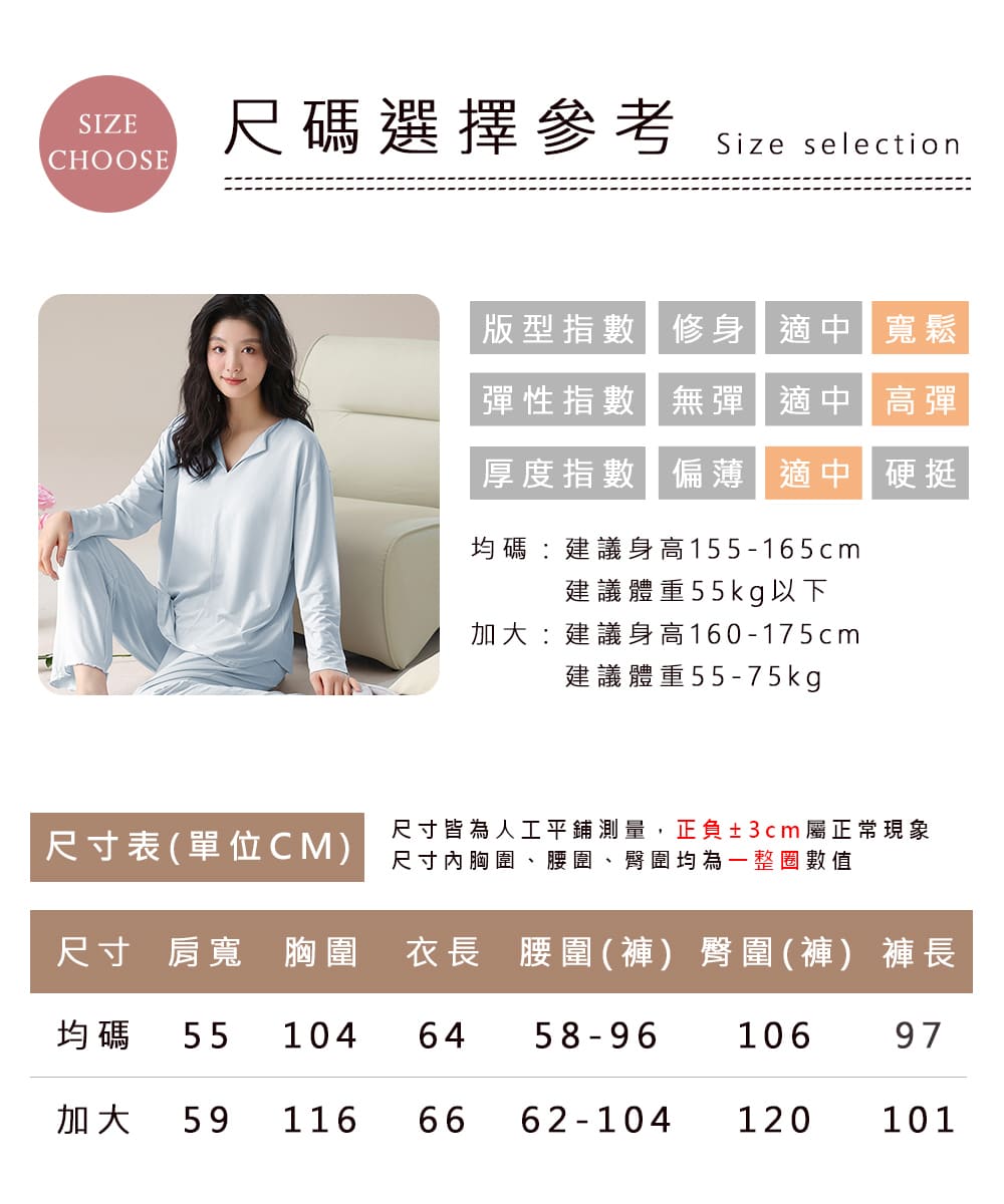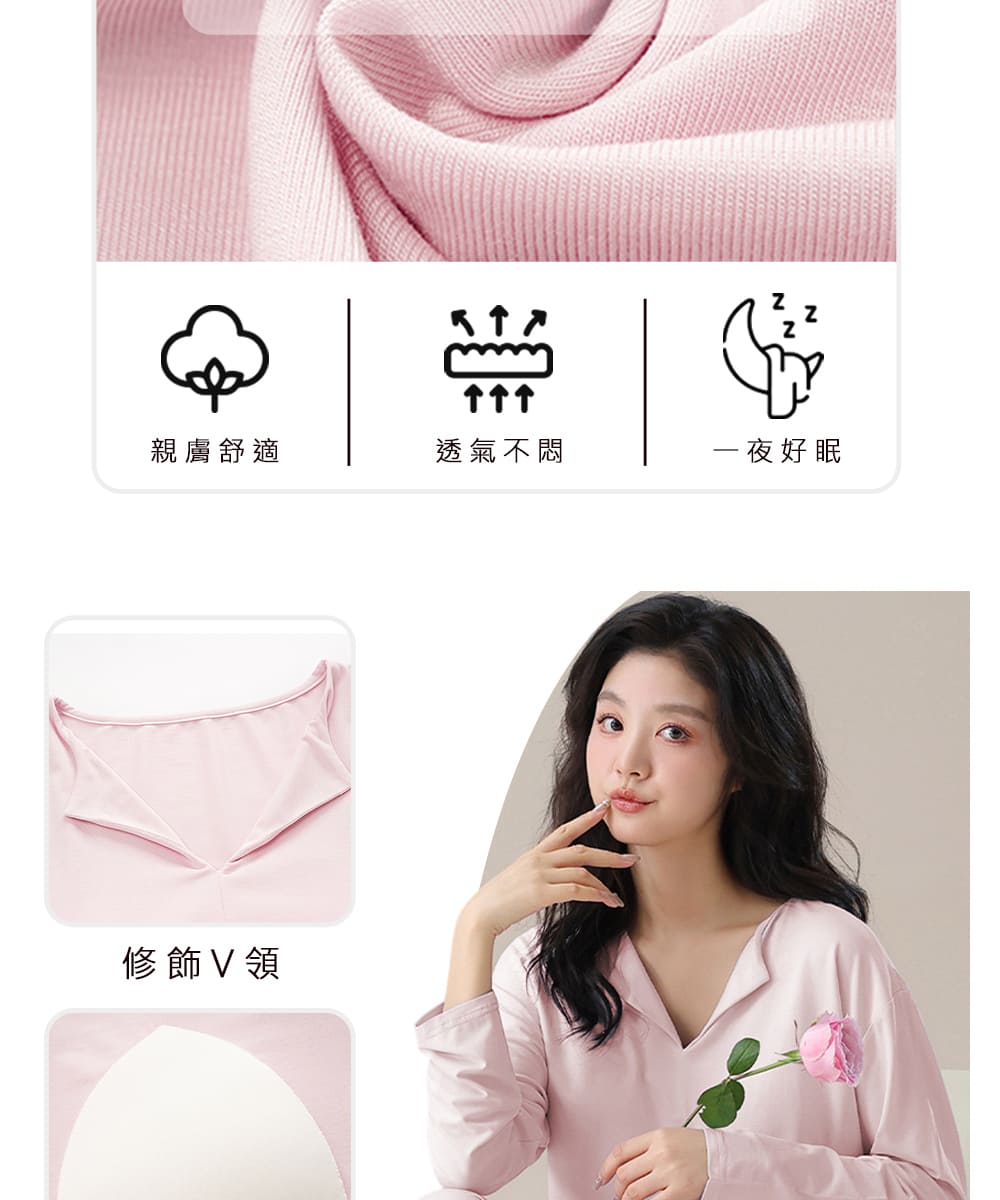 【Kosmiya】1套 帶胸墊 莫代爾 浪漫簡約長袖睡衣/女睡衣/居家服/睡衣套裝(3色可選/均碼/加大碼)