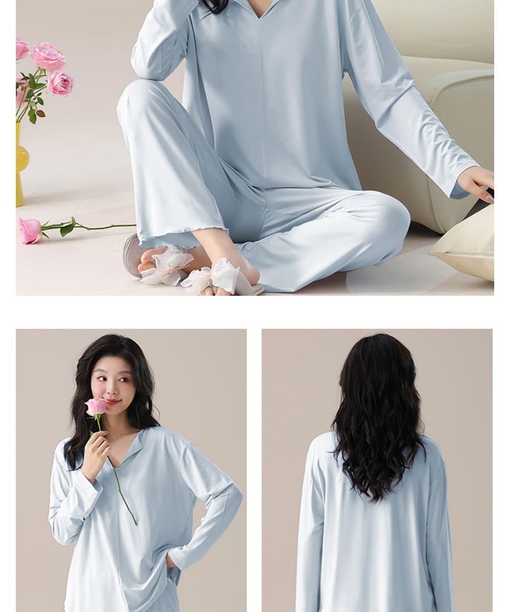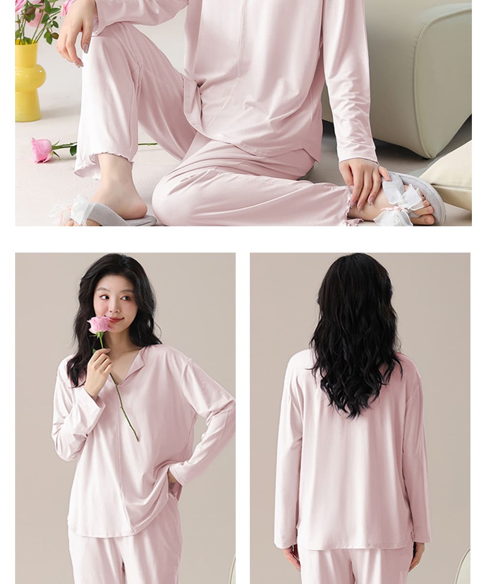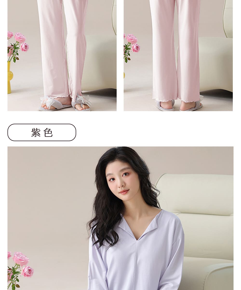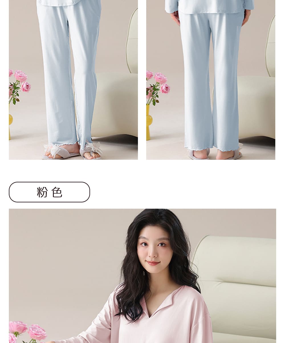 【Kosmiya】1套 帶胸墊 莫代爾 浪漫簡約長袖睡衣/女睡衣/居家服/睡衣套裝(3色可選/均碼/加大碼)