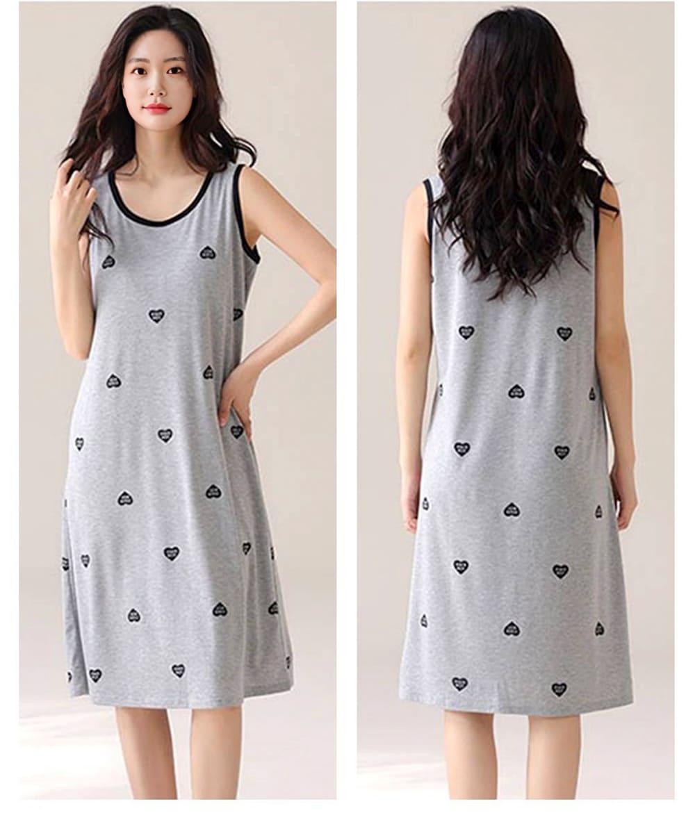 【Kosmiya】1套 帶胸墊 莫代爾 甜睡星空無袖睡裙/女睡衣/睡裙/居家服/連身洋裝/洋裝(3色可選/均碼/加大碼)