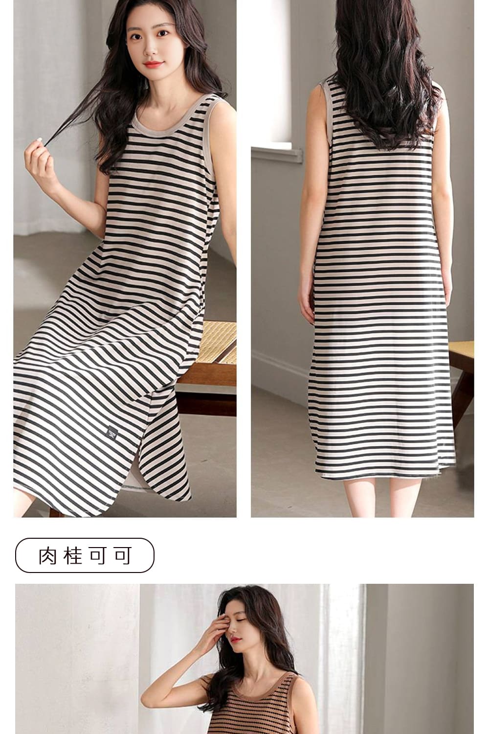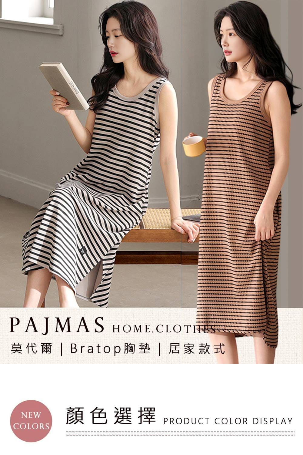 【Kosmiya】1套 帶胸墊 莫代爾 可可奶霜無袖睡裙/女睡衣/睡裙/居家服/連身洋裝/洋裝(3色可選/均碼/加大碼)